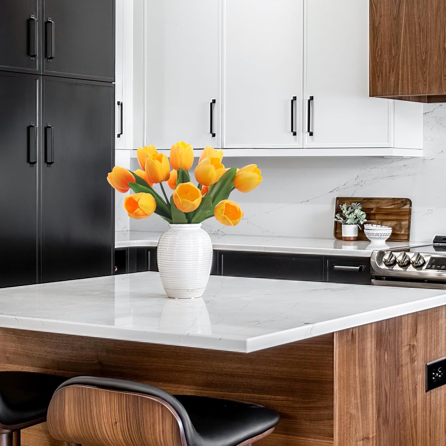• Wide application: These artificial tulips are ideal for home and office decoration. You can use them in the kitchen, shelves, tables or anywhere else. They can also be used as decorations or centerpieces for weddings and parties, or as holiday gifts for friends and relatives on Valentine's Day, Easter, Mother's Day, Christmas, New Year.