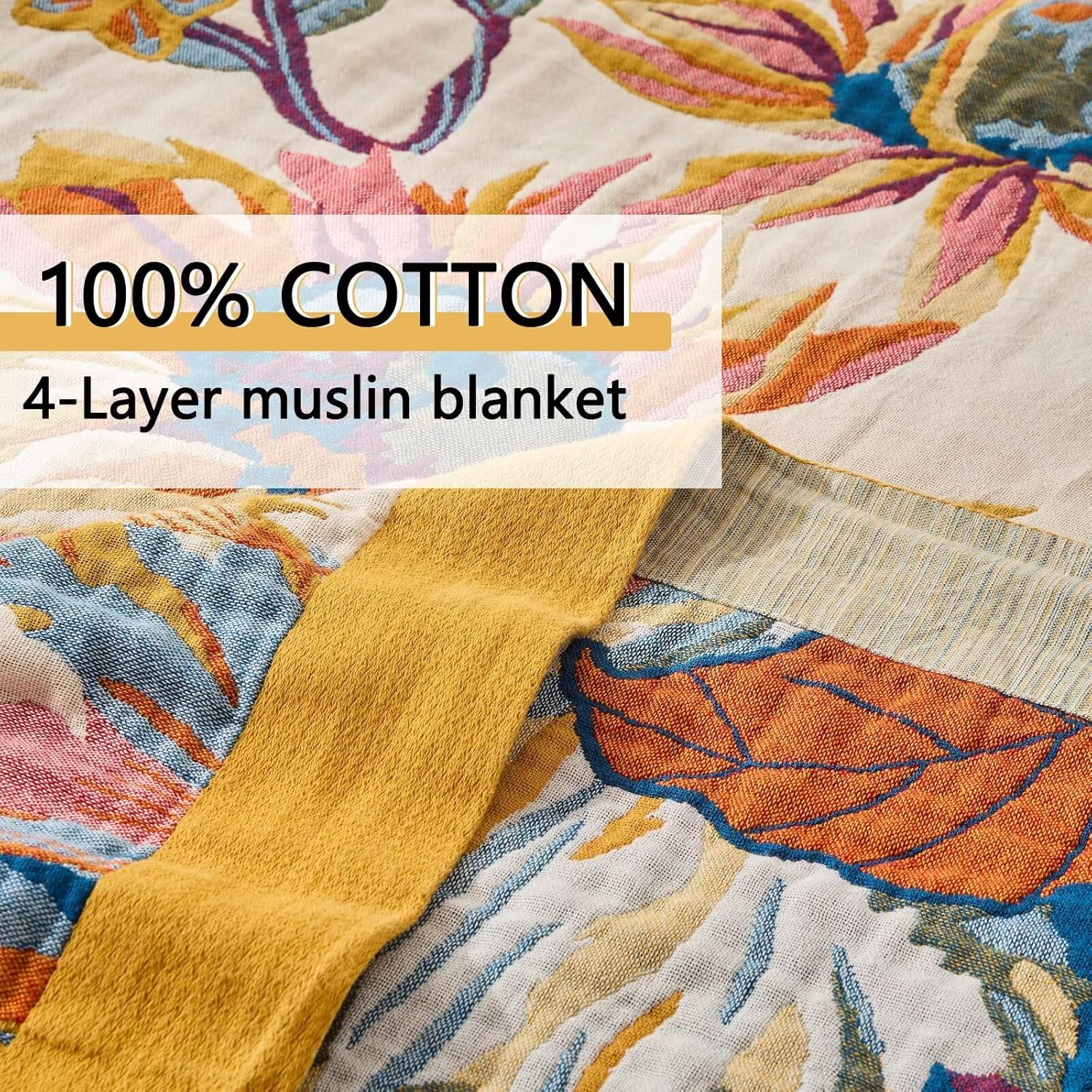 - Ultra Soft : This double side pattern boho bed blankets made from 4 layers of 100% cotton, which has a softer and fuffy touch,warm, skin-friendly and breathable.Measuring 50W"x60L" and weighing 2.2 lbs(1000g)