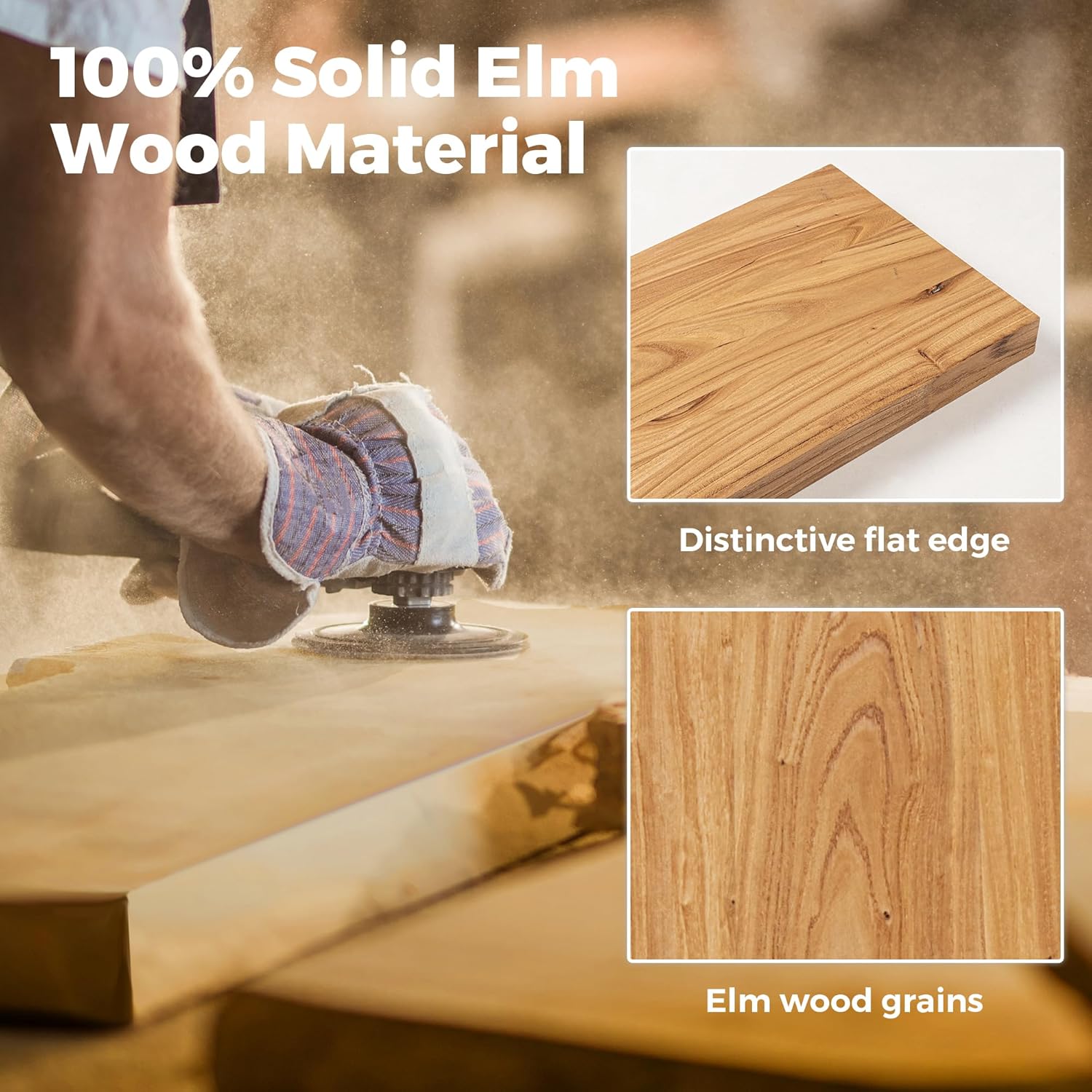 - LAST AND STURDY: Crafted from thick, high-quality solid elm wood, solid elm wood will stand the test of time; shelf is 100% real live edge wood, no veneers; our floating wall shelf is capable of holding up to 100 lbs. The heavy duty hidden metal brackets and wall anchor hardware ensure stability and prevent any sagging issues