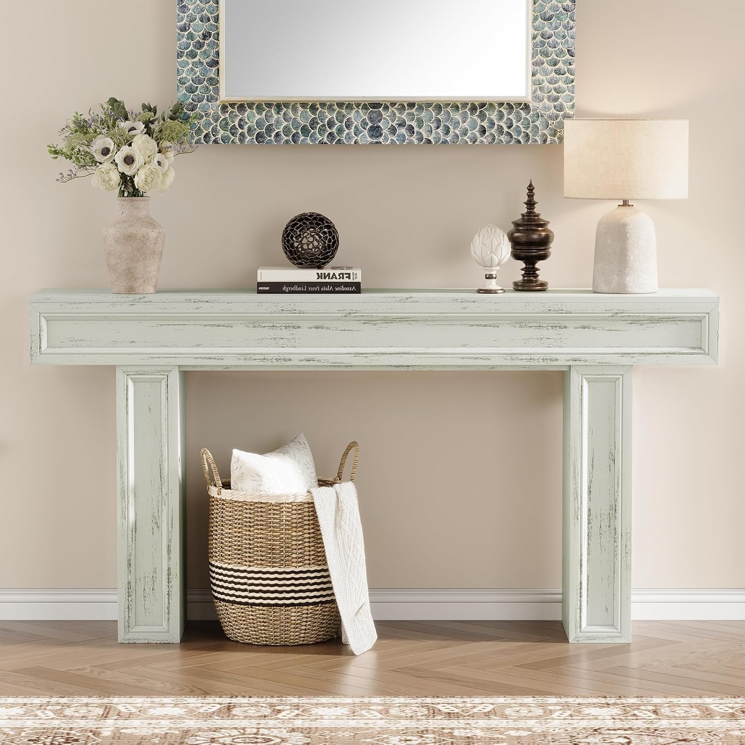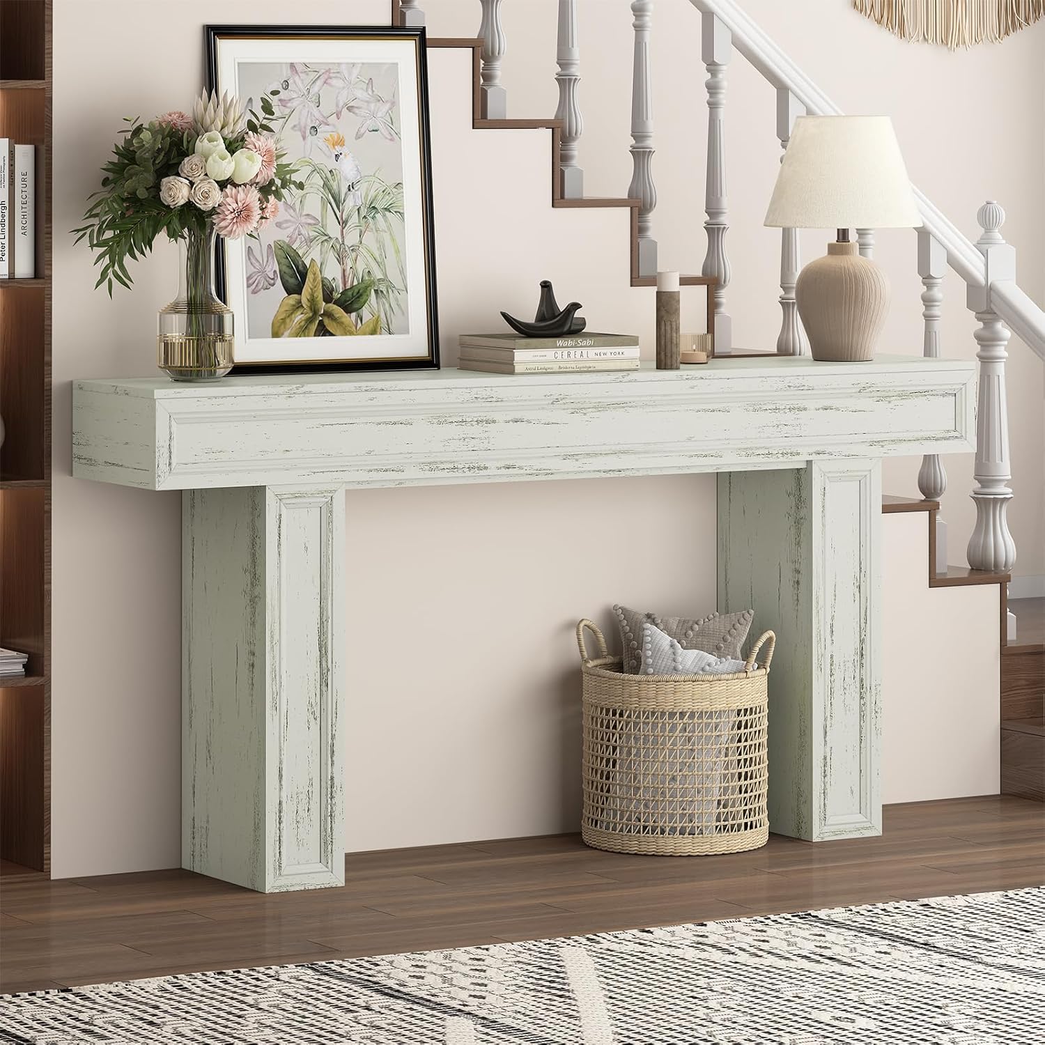 Rresyet 63 Inch Long Console Table, Sofa Table Behind Sofa, Wooden Entryway Table, Farmhouse Entryway Table for Entry, Hallway, Living Room (White)