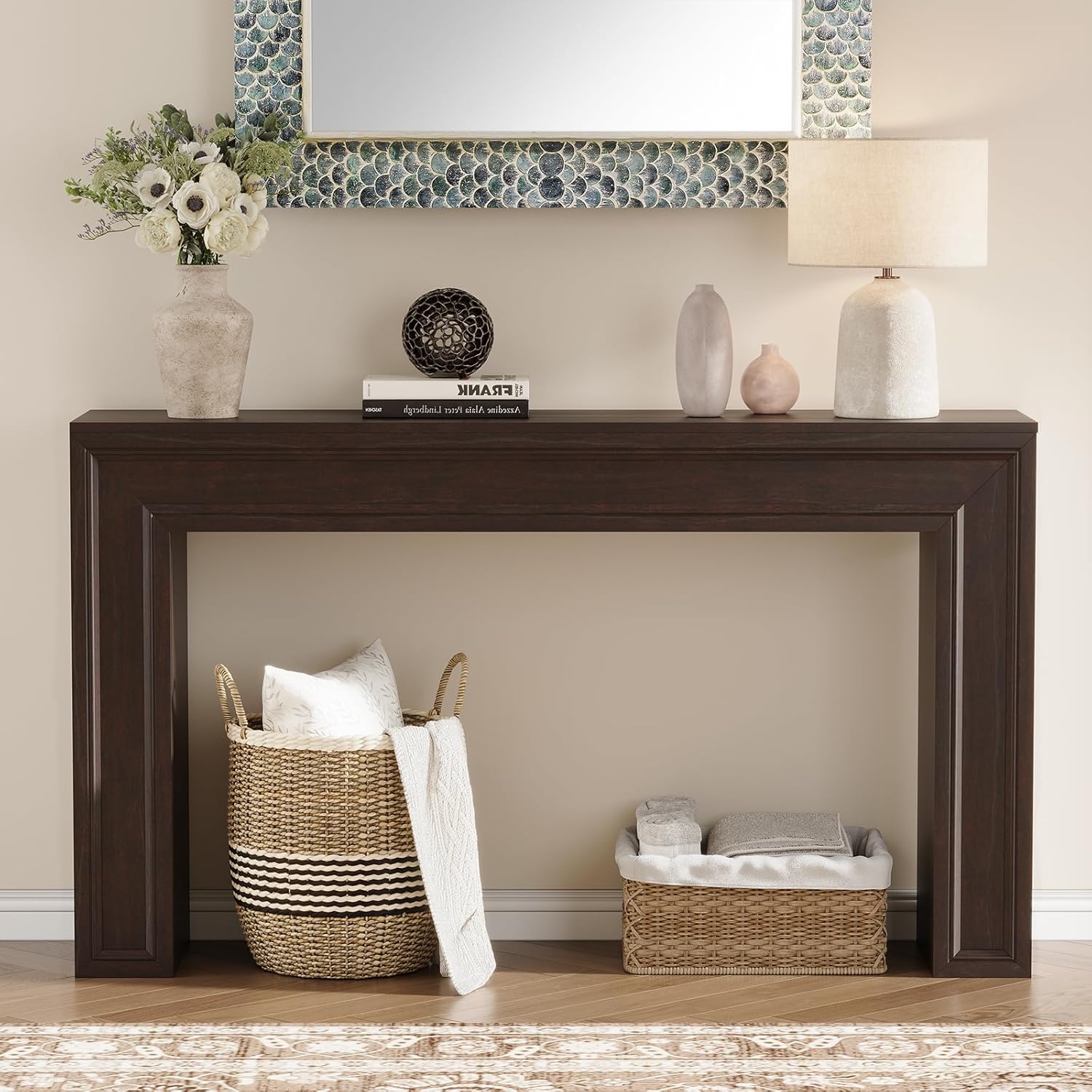 Rresyet 55 Inch Long Console Table, Sofa Table Behind Sofa, Wooden Entryway Table, Farmhouse Entryway Table for Entry, Hallway, Living Room (Cherry)