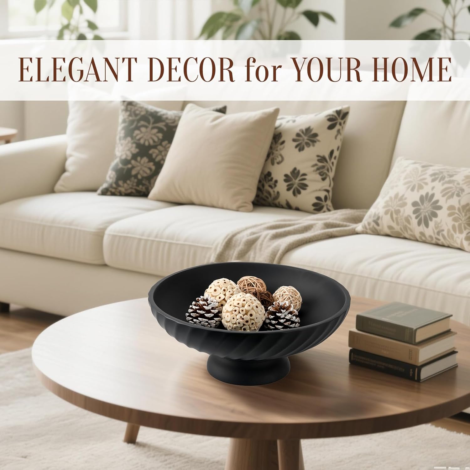 Large Resin Pedestal Decorative Bowl - Modern Fruit Bowl for Kitchen Counter - Handicraft Bowls for Home Decor - Key Bowl for Entry Table,Matte Black