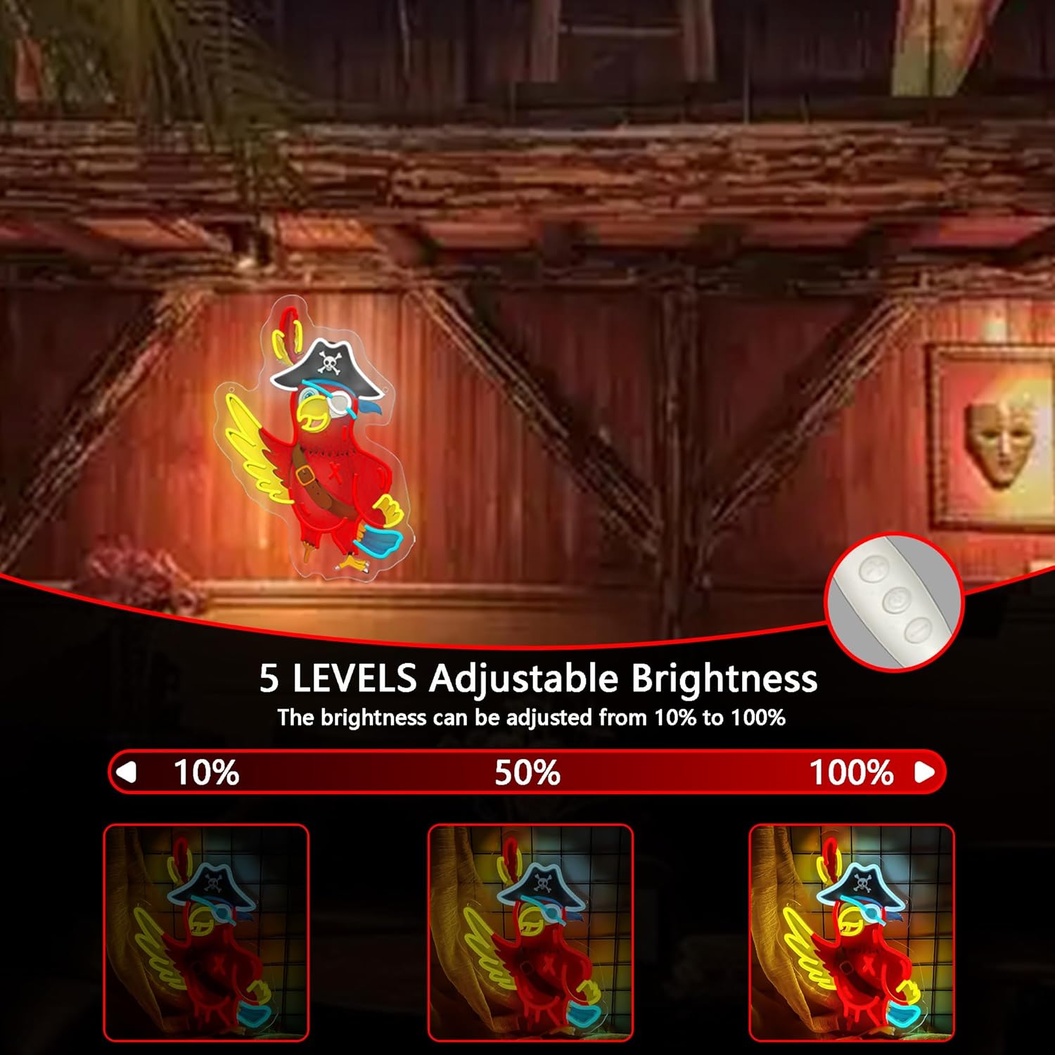Pirate Parrot Neon Light - Pirate LED Light Wall Decor Ideal for Pirate Party Decorations Gifts for Friends