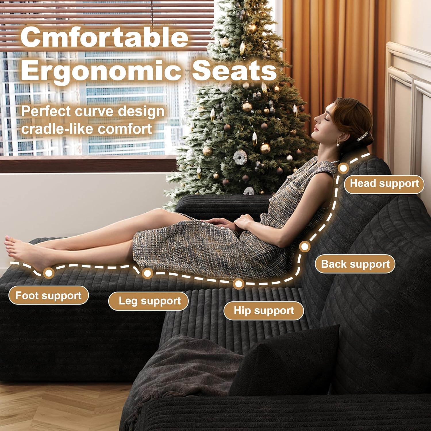 108" Sectional Couches for Living Room Modern Modular Sofa with L-Shape Couchs Upholstered Boneless Couch Deep Seat Sectional Couch with Chaise (Black, Left Facing Chaise+2Seaters)