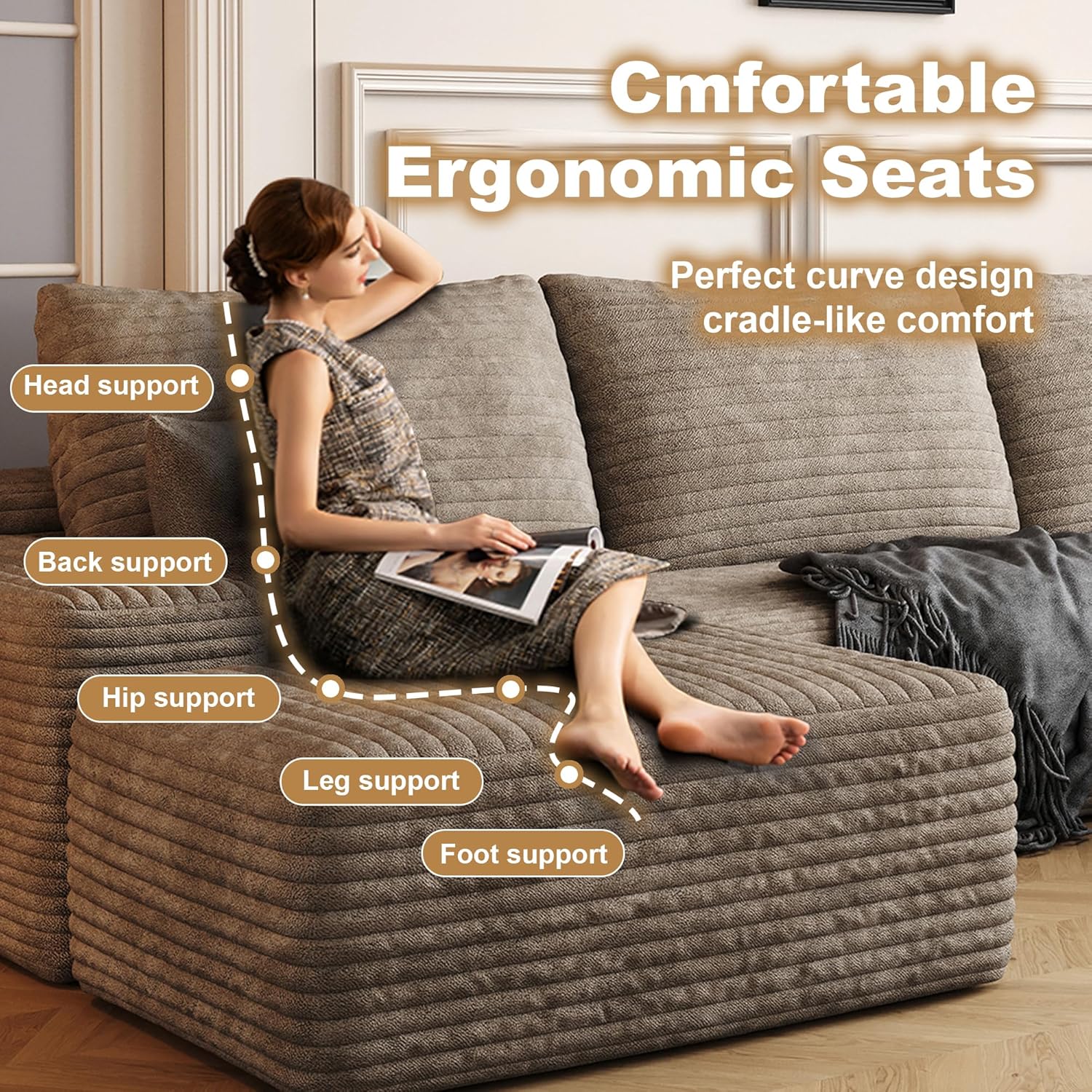 108" Sectional Couches for Living Room Modern Modular Sofa with L-Shape Couchs Upholstered Boneless Couch Deep Seat Sectional Couch with Chaise (Camel, Right Facing Chaise+2Seaters+1Ottoman)