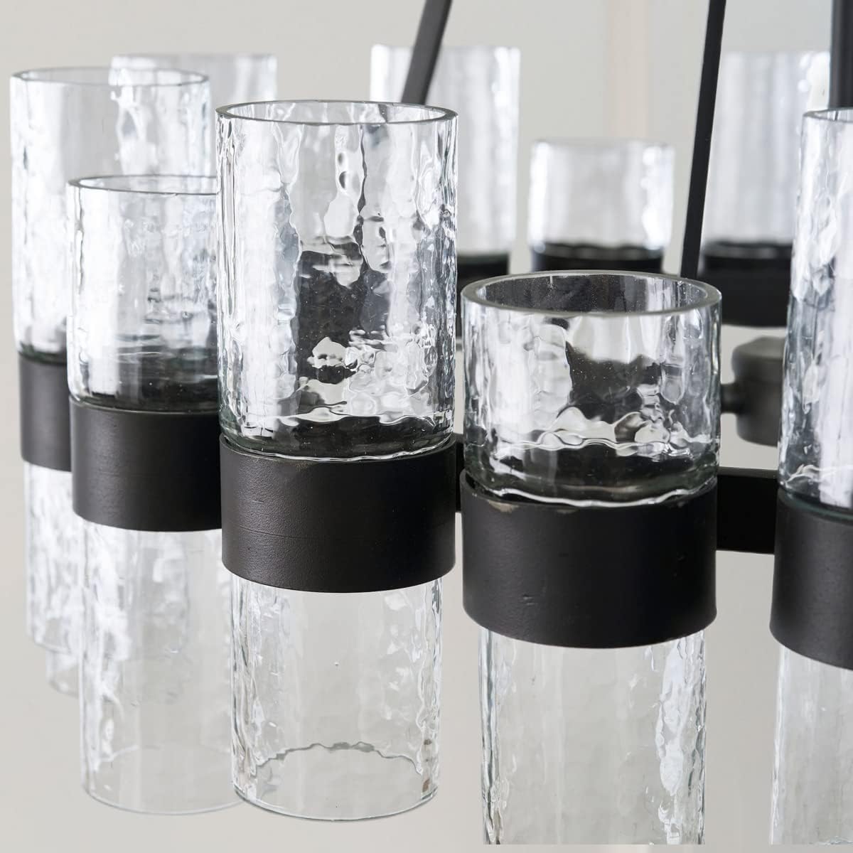 - [Unique Design] Enhance your decor with our industrial glass tube round chandelier, merging modern style with industrial appeal. Each mouth-blown glass piece is handcrafted by artisans, blending traditional techniques with contemporary design for a striking focal point