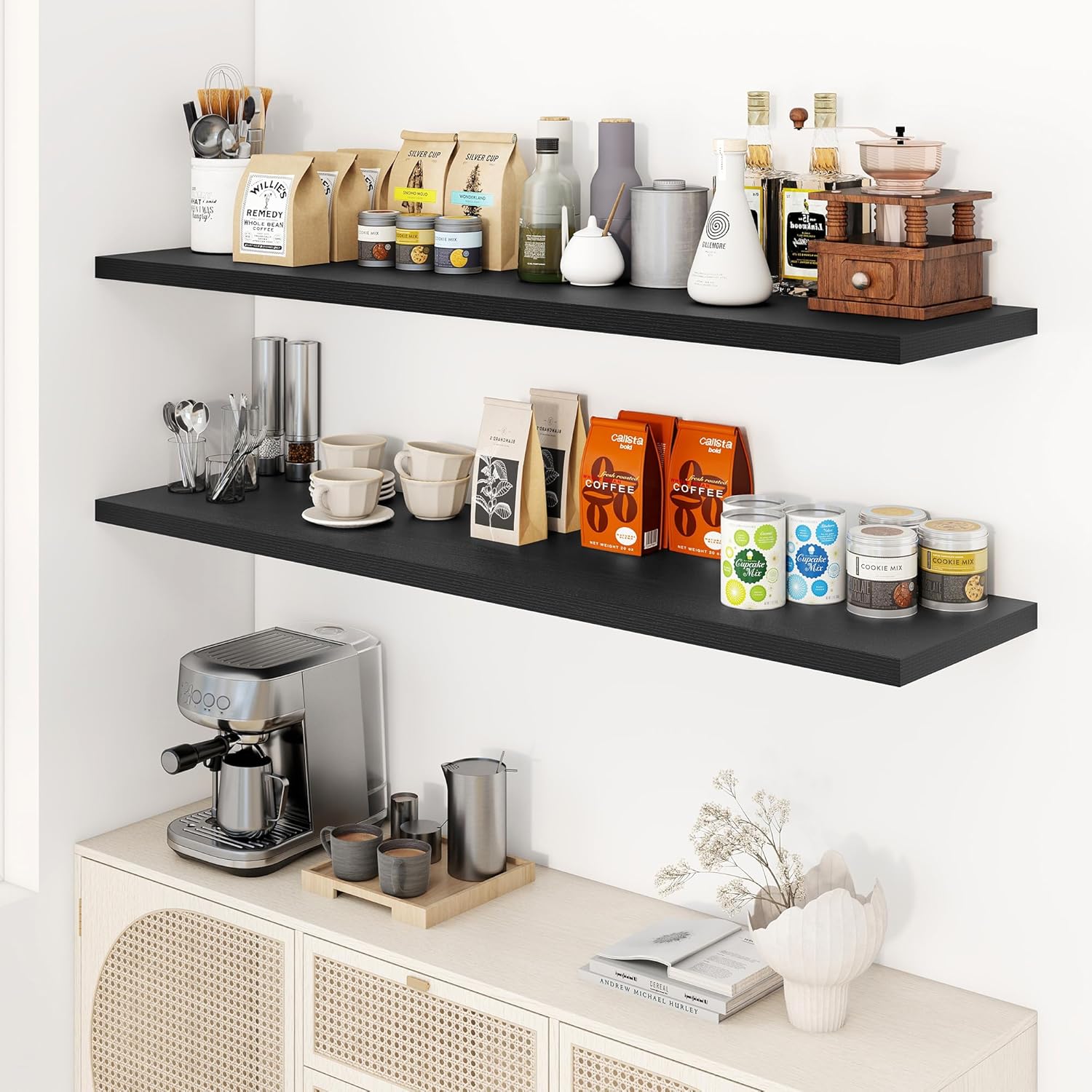 - Space Optimization: Our wood shelves come in rich colors and sizes. Featuring a simple flat design, they effortlessly adapt to various home styles—from modern to rustic farmhouse.