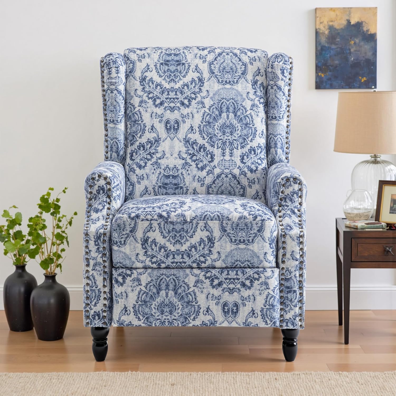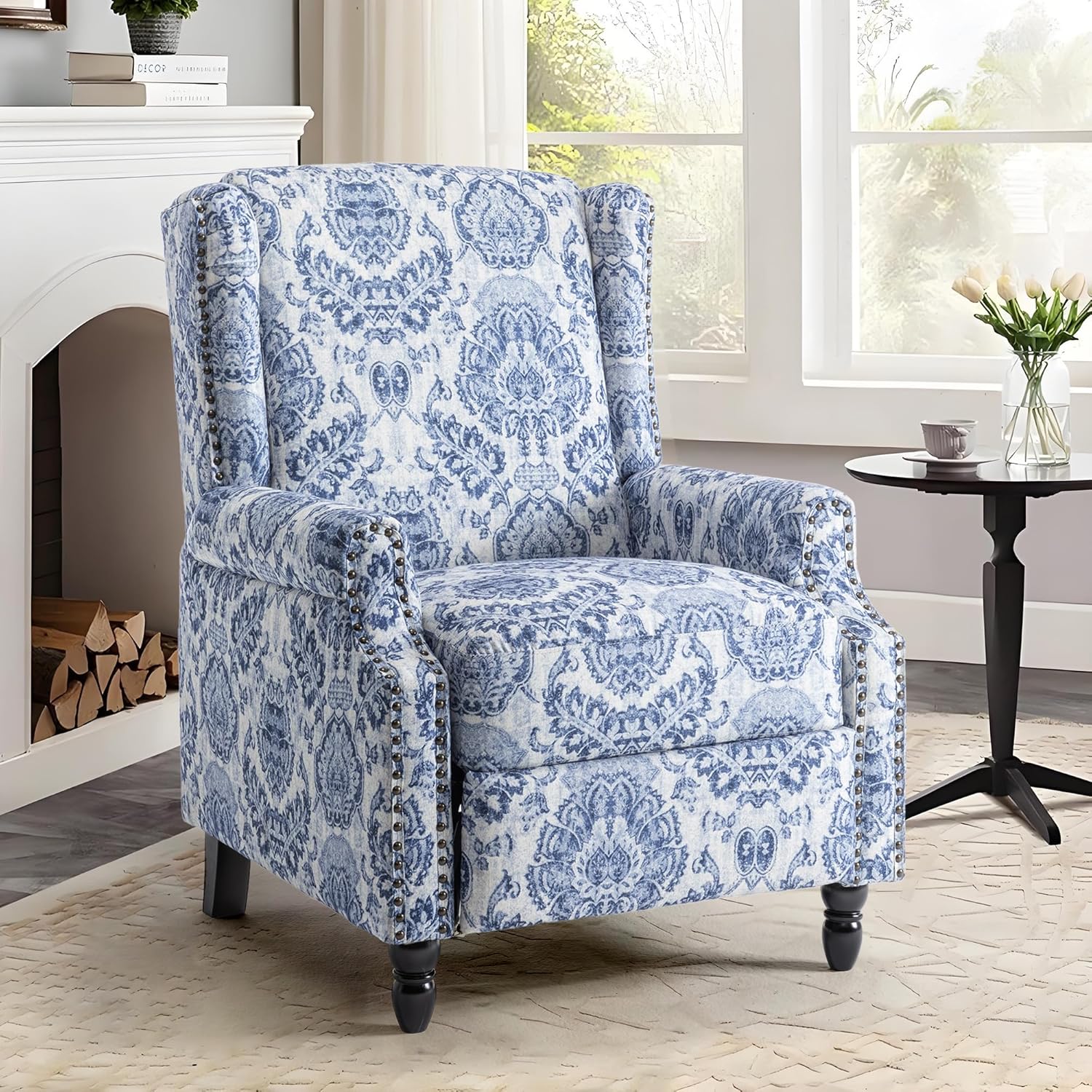 UIXE Floral Pushback Recliner Chairs Set of 2, Fabric Upholstered Armchair Push Back Accent Chair for Living Room, Rivet Trim Club Chair Home Theater Single Sofa Reading Seat - Navy Blue