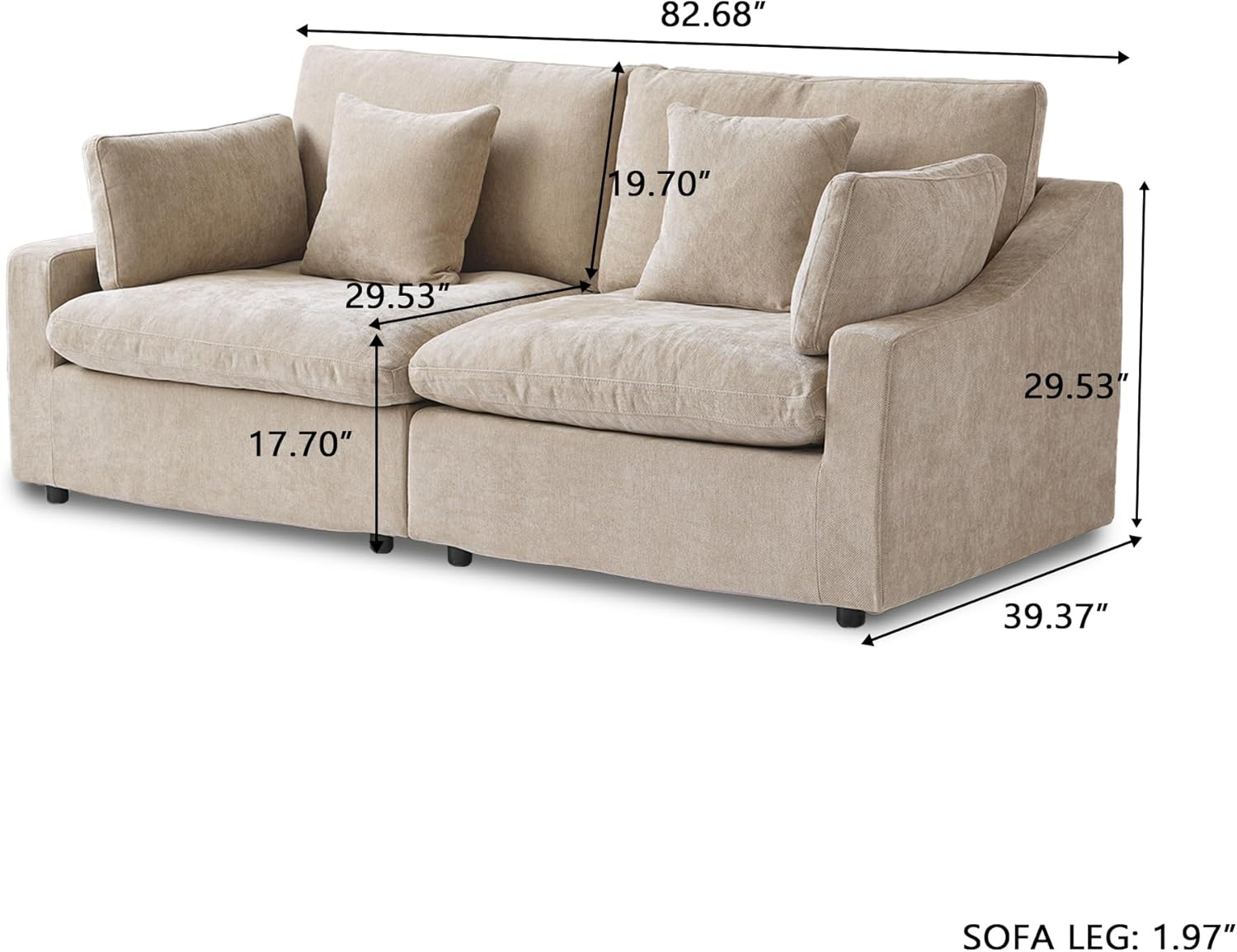 - β [Size Information] Overall Size: 82.68"L x 39.37"W x 29.53"H. The cushion cover, backrest cover, and frame cover of the sofa can all be removeable and washable. You can easily keep the sofa clean.