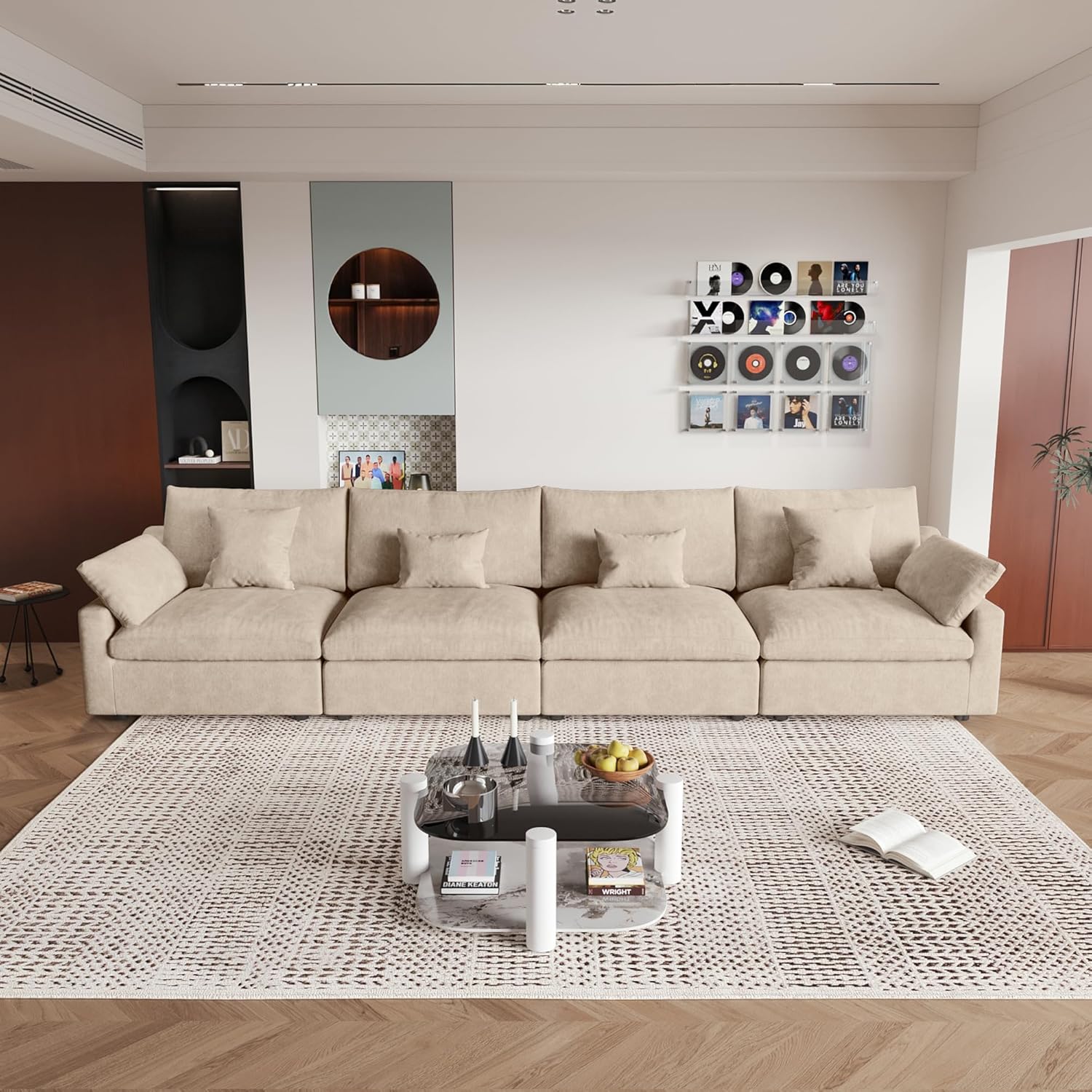 JACH Sectional Couches for Living Room, 4 Seater Cloud Sectional Couch with Deep Seat, Down Filled Modular Sofa, Covers Removeable & Washable, Sofas Furniture for Living Room, Khaki