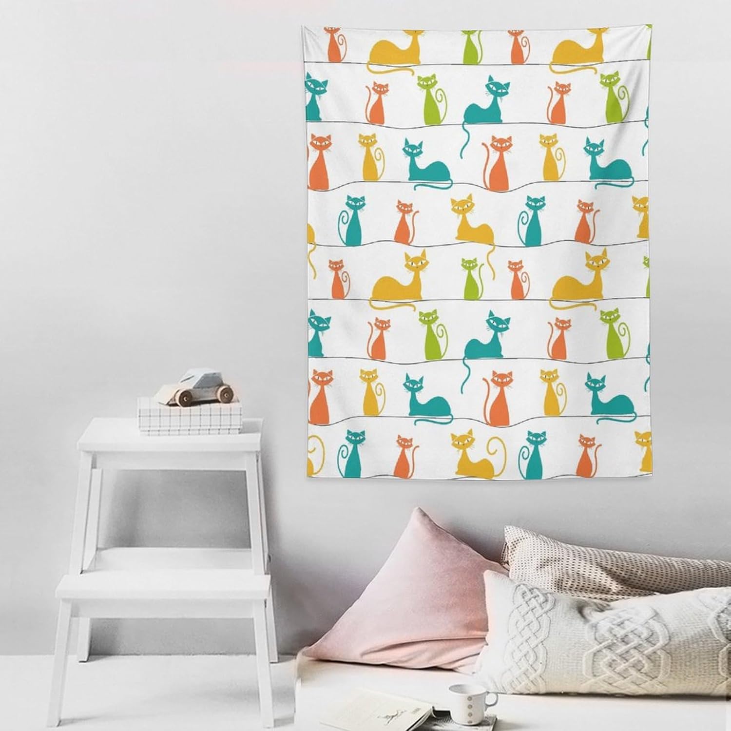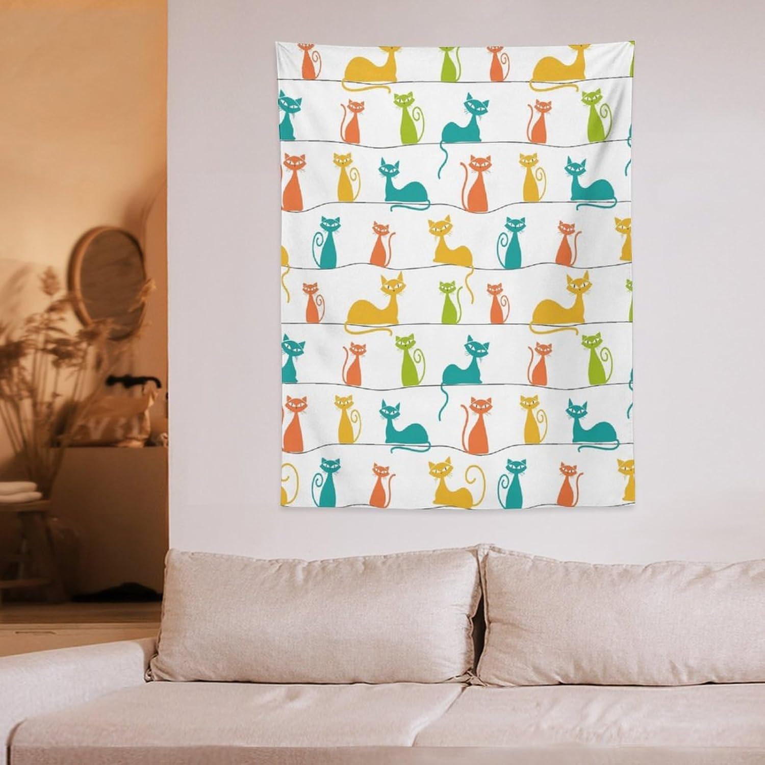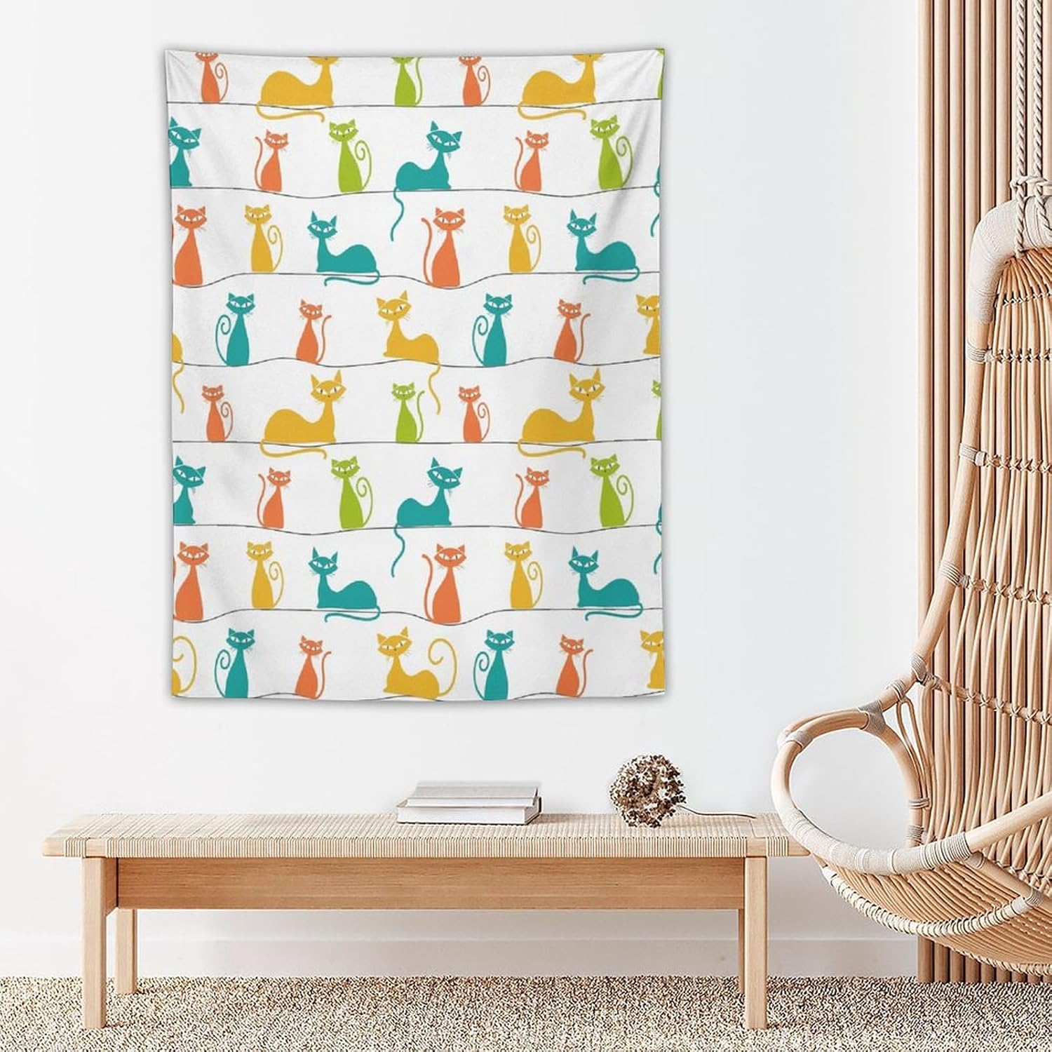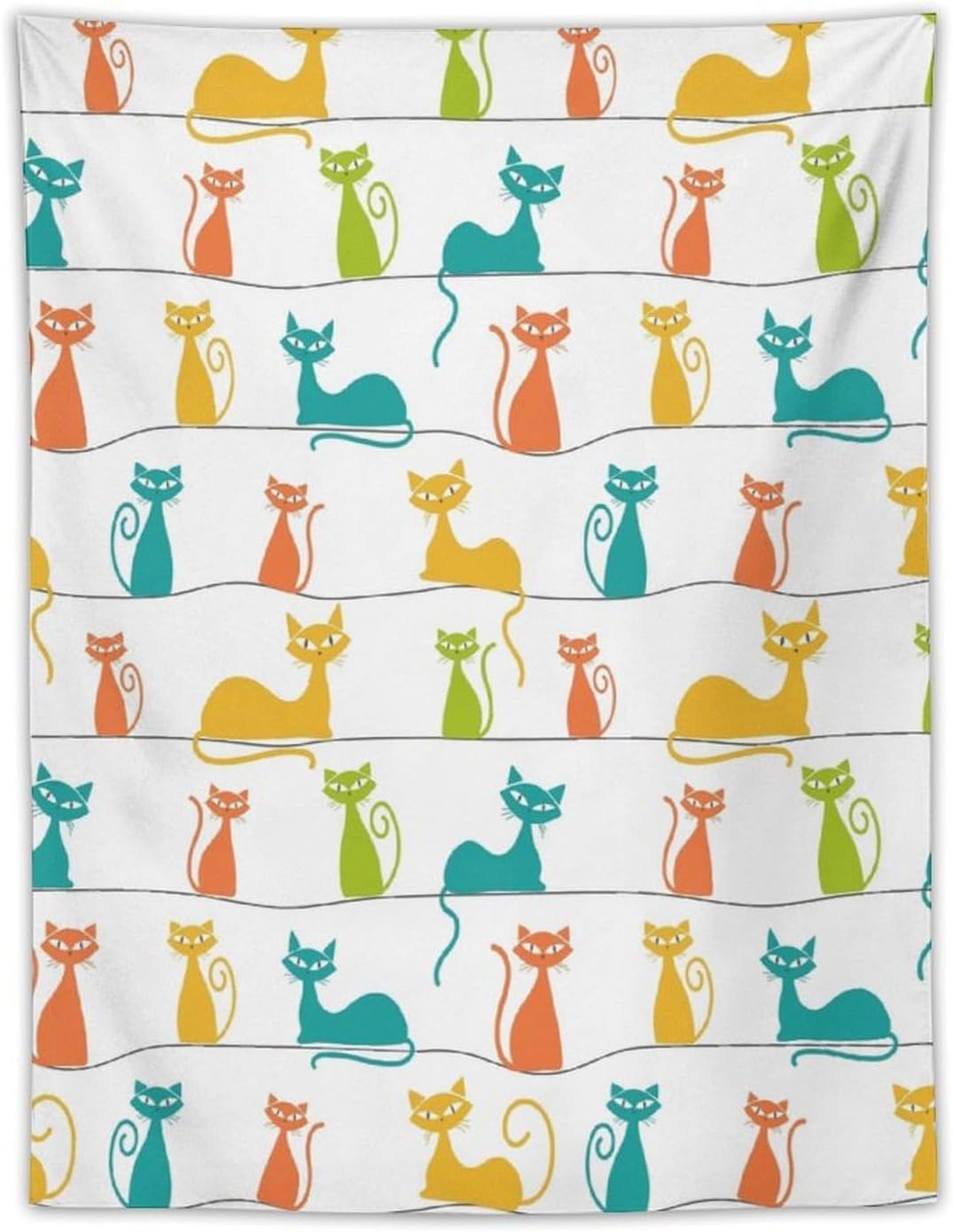 ICMOLYYENLO Boho Medieval Cat Tapestry, Abstract Atomic Starburst Geometric Aesthetic Art Wall Hanging For Bedroom Living Room Dormitory 40x60 Inches