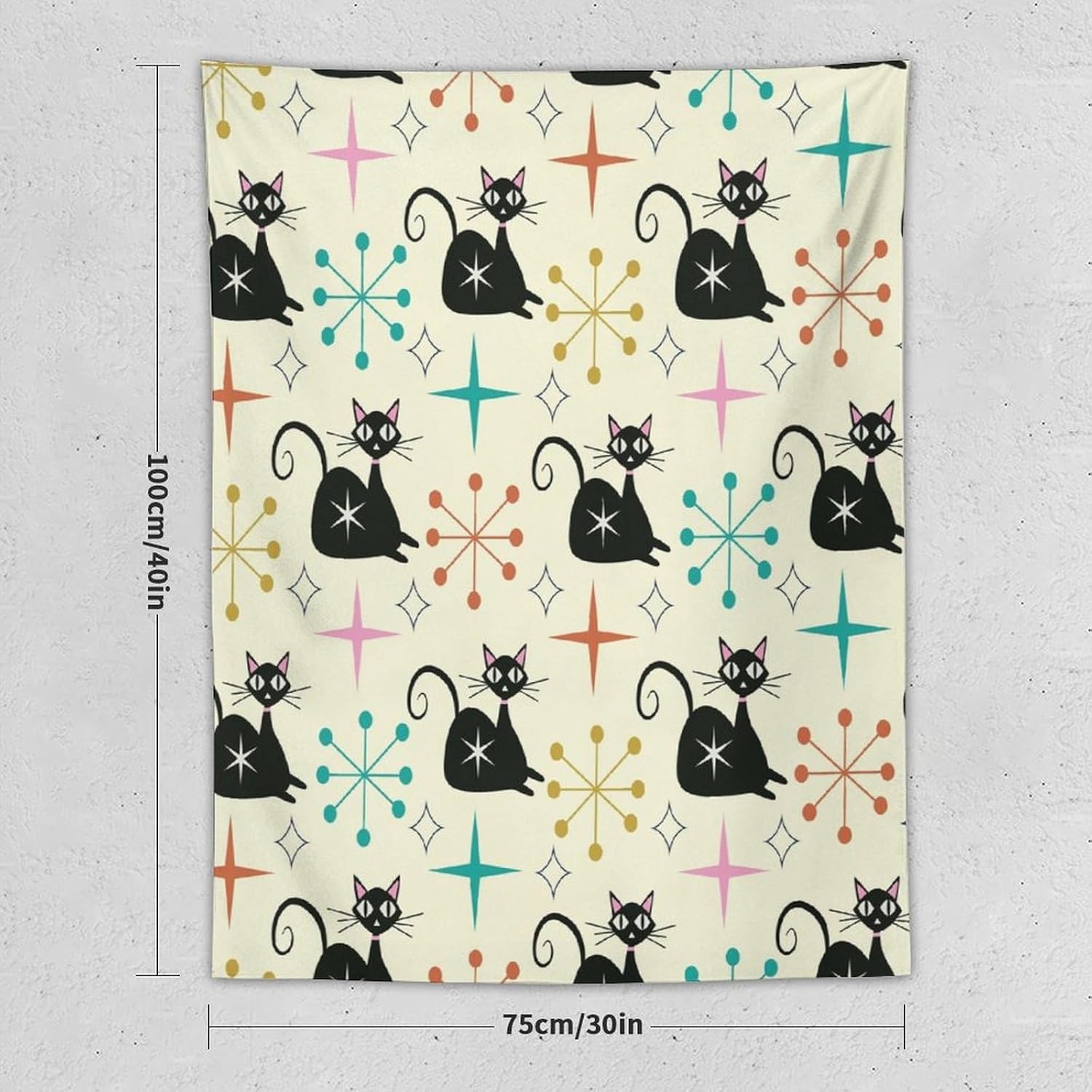 ICMOLYYENLO Abstract Cat Tapestry, Medieval Abstract Atomic Star Cat Vintage Home Wall Hanging Art Tapestry for Bedroom Living Room Dormitory 30x40 Inch