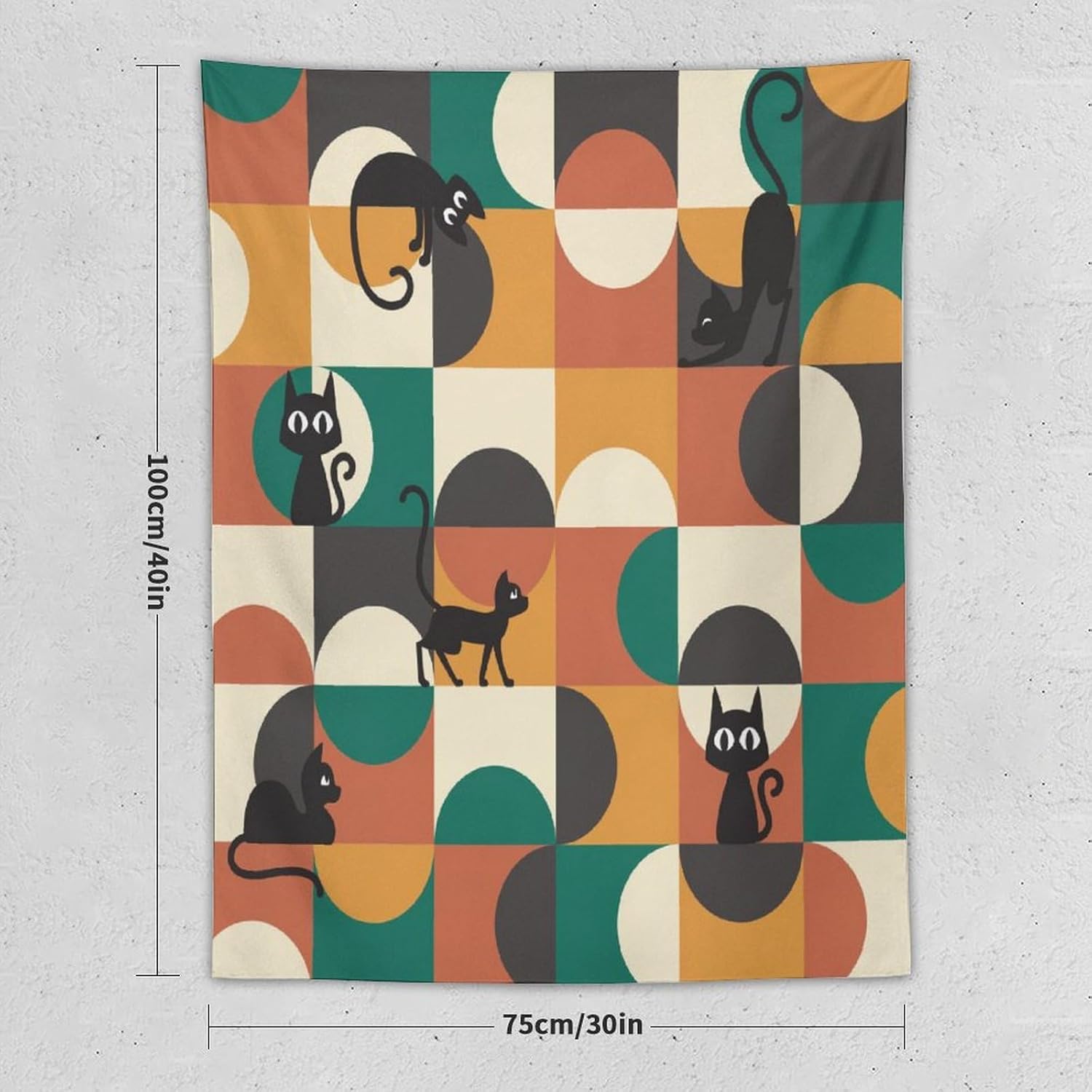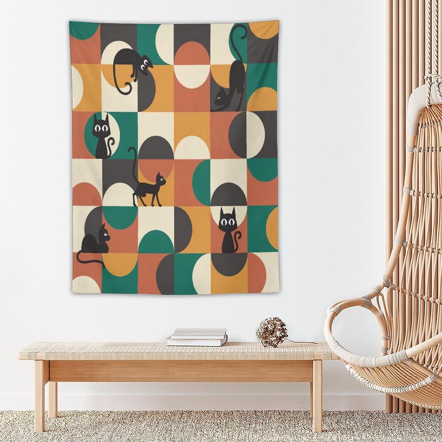 ICMOLYYENLO Boho Medieval Cat Tapestry, Abstract Atomic Starburst Geometric Aesthetic Art Wall Hanging For Bedroom Living Room Dormitory 60x60 Inches