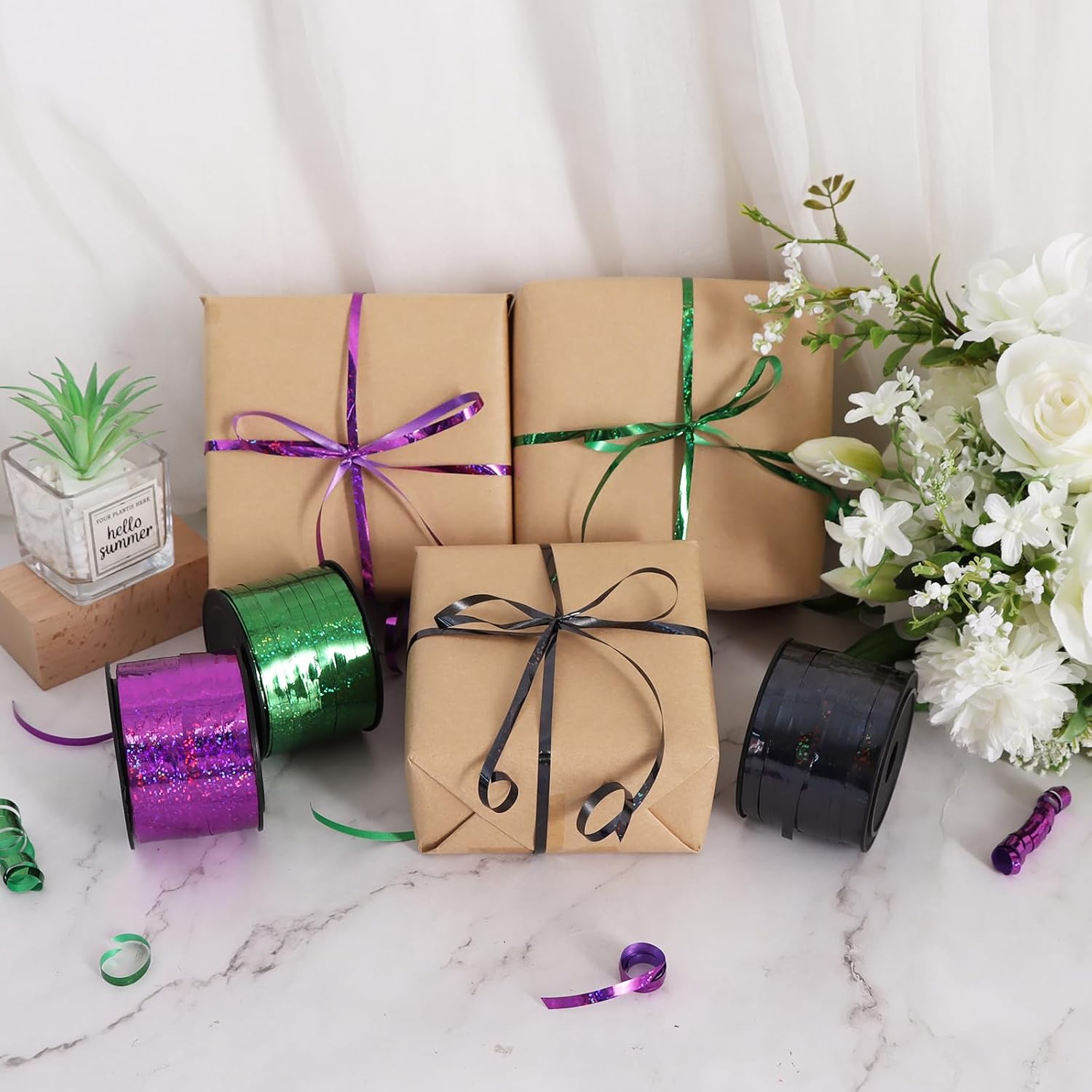 BEISHIDA 3 Pack 100 Yards Red Green Purple Halloween Curling Ribbon Balloon String Gift Wrapping Ribbon for Halloween & Birthday Parties, Holiday Decorations