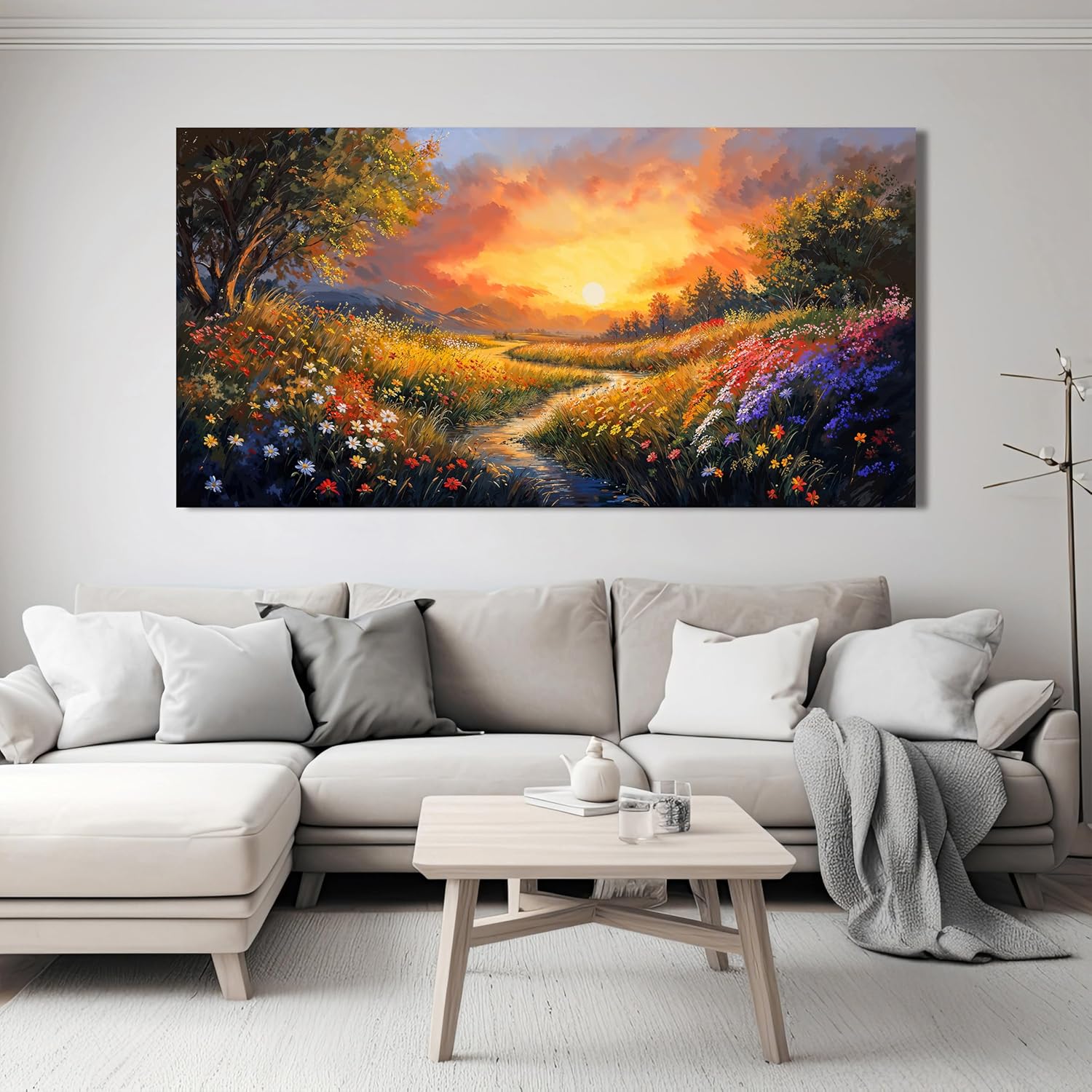 Canvas Wall Art Decor Wall Art Pictures for Living Room Large Vintage Landscape Wall Art Prints Canvas Art Wall Decor Wildflower River Artwork for Walls Bedroom Home Aesthetic Wall Art Decor 24" X 48"