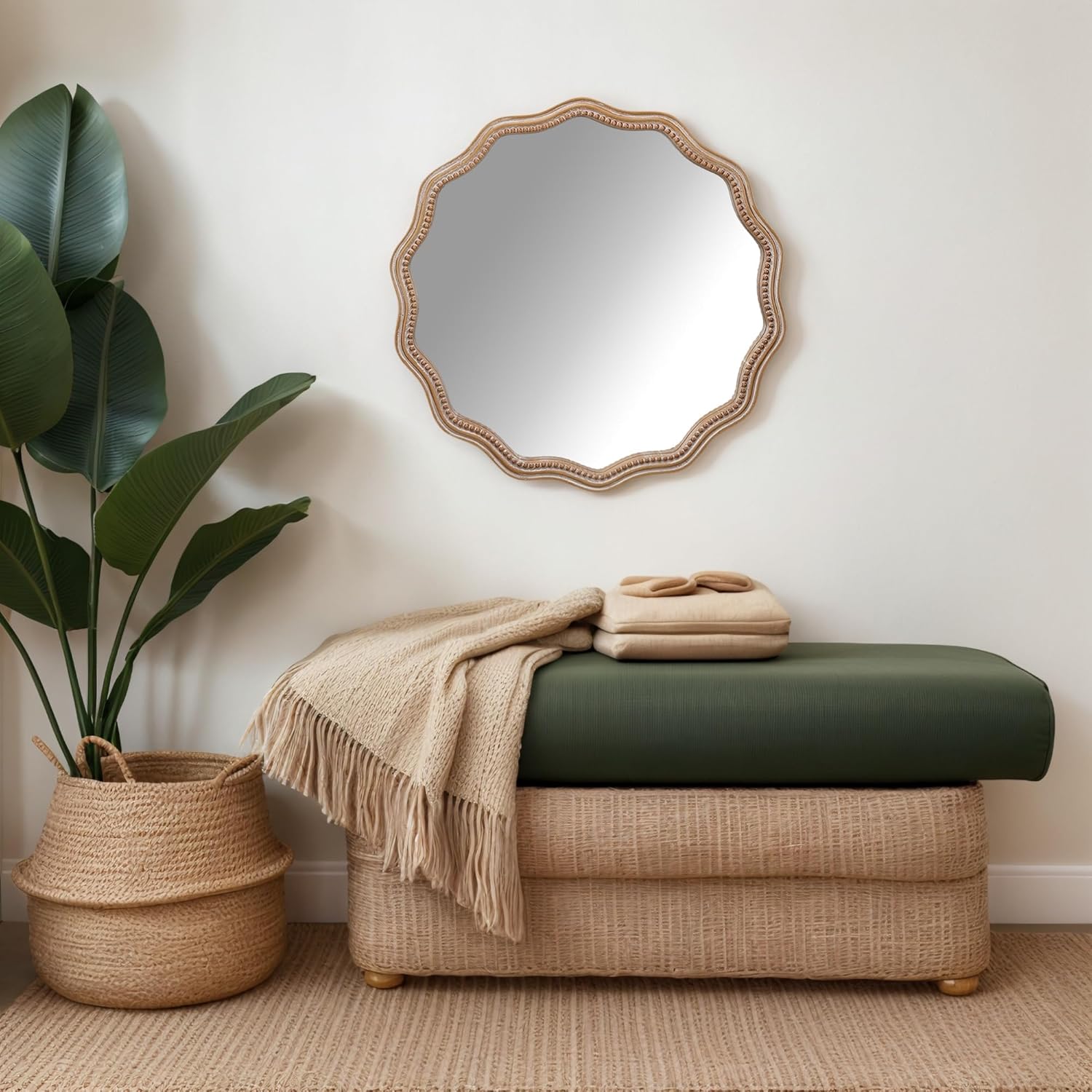 - Nature-Inspired Wavy Design - Unique irregular wood frame with elegant beaded border. Perfect decorative mirror for farmhouse, modern, or rustic styles.Complements wall mirrors for living room or hallway mirror for wall entry