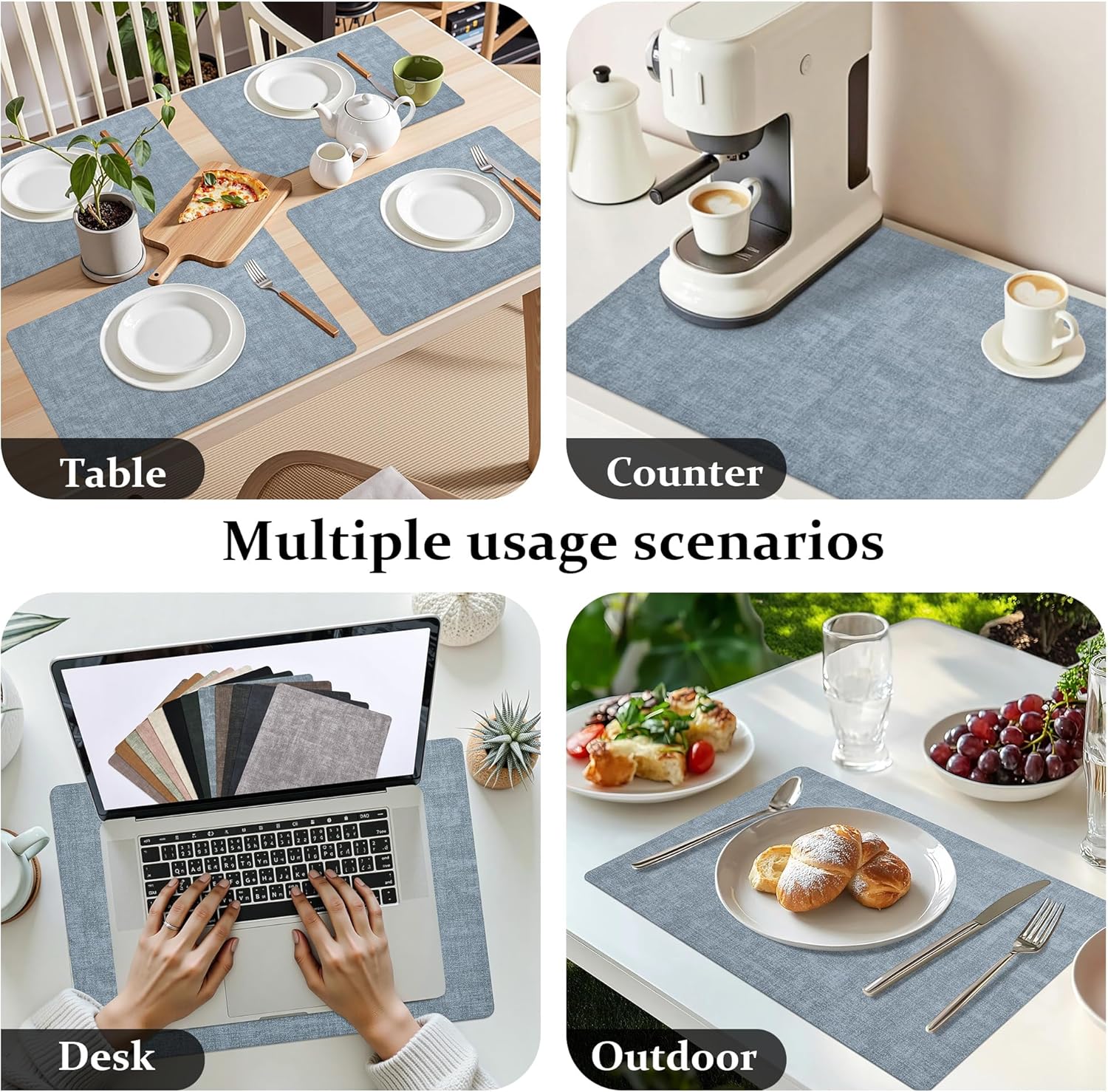 - Versatile for Indoor & Outdoor Use:From kitchen tables to patios and coffee shops, our placemats elevate any dining space. Available in a range of stylish colors to match modern, rustic, or minimalist décor. Perfect for daily meals, picnics, parties, and more.Can also be used as table mats, kitchen appliance mats.