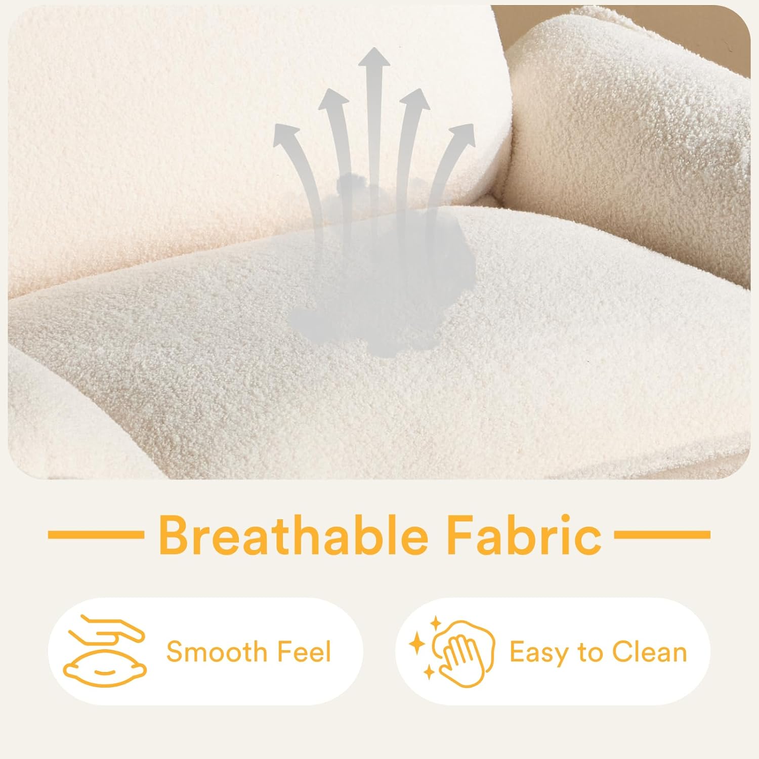 - Soft Teddy Fleece - Covered in cozy teddy fleece, this lounge chair offers a velvety feel that's soft to the touch. Its stylish, textured surface adds a touch of elegance and warmth to your living room.