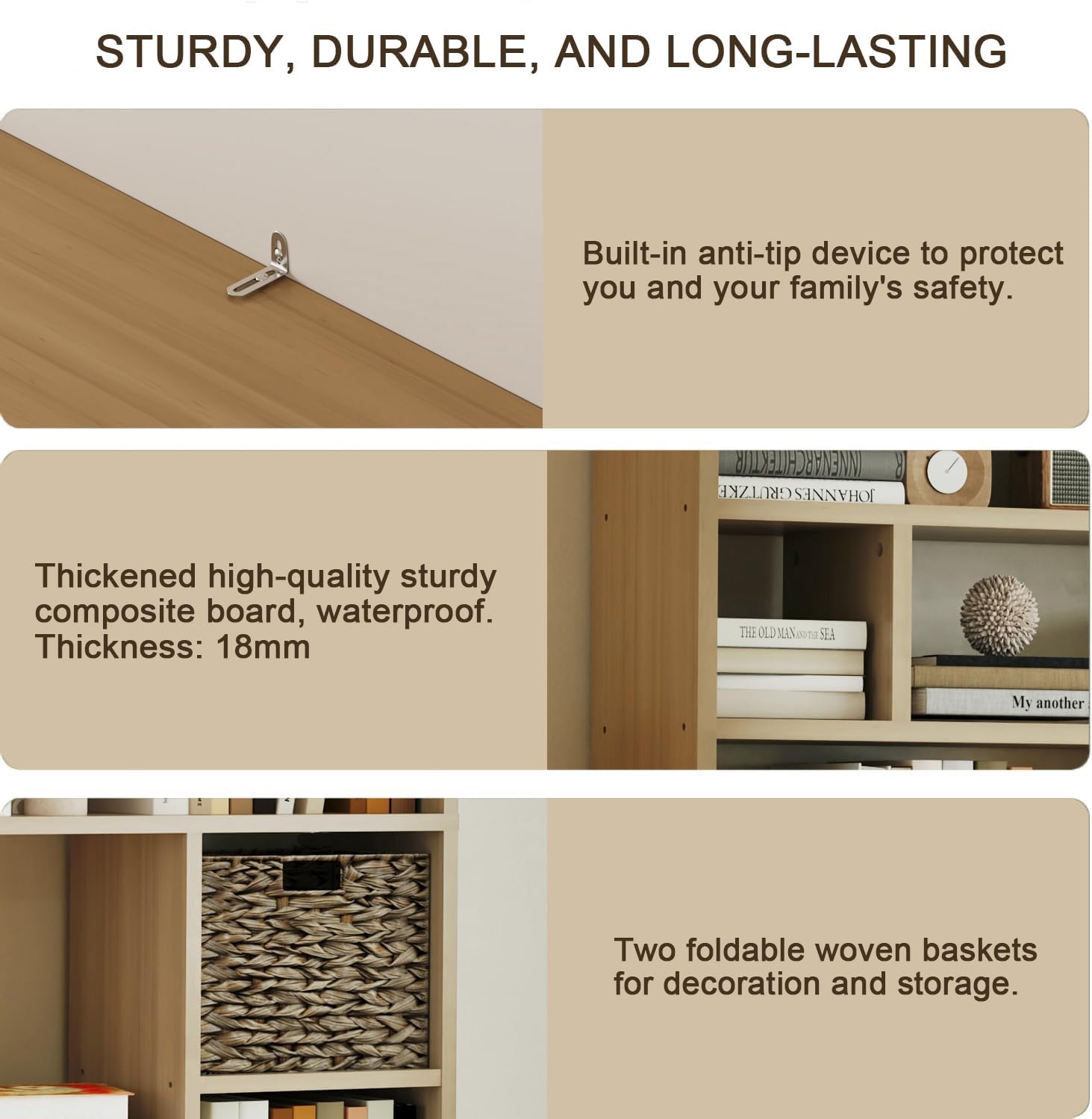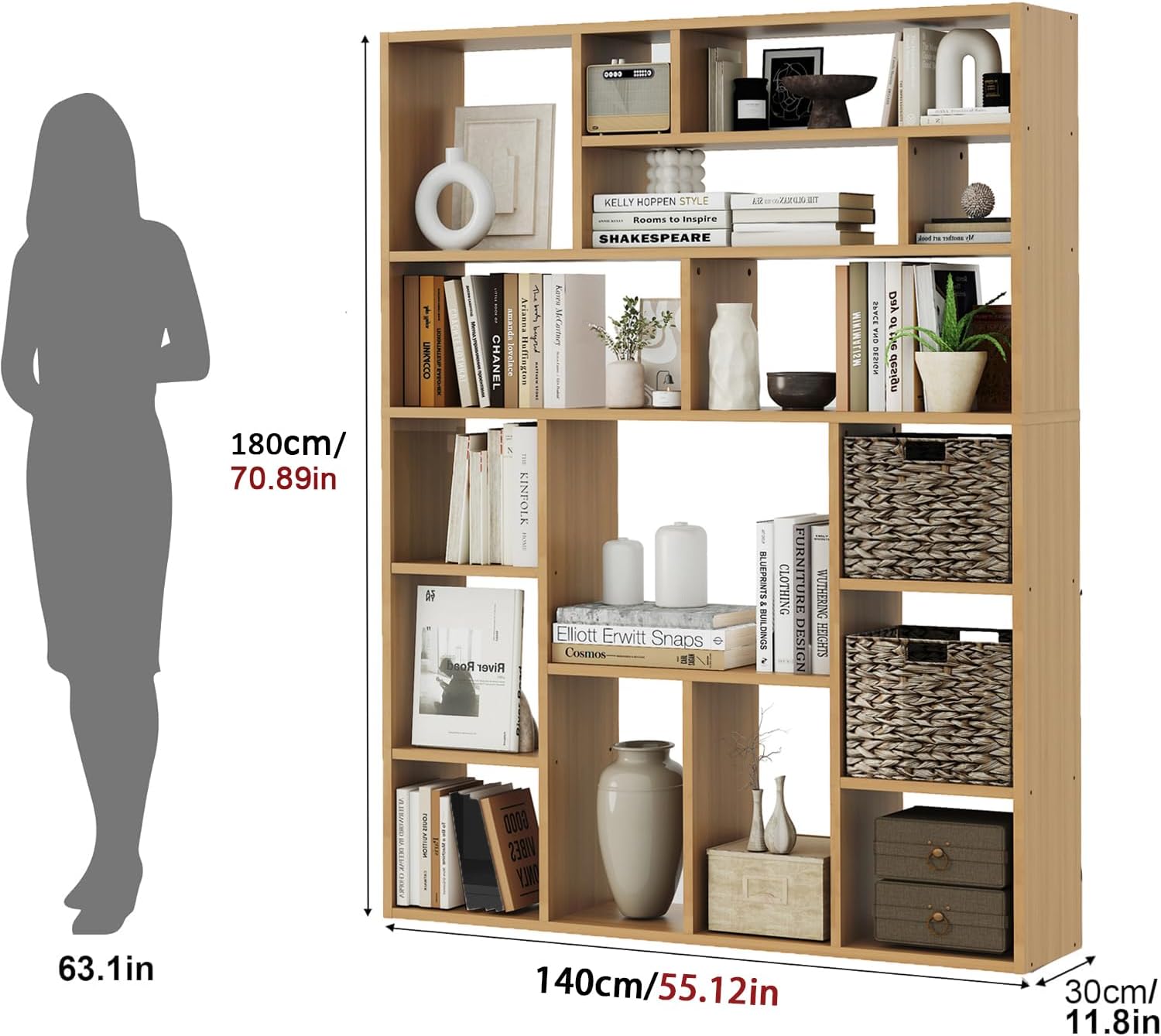- Smart Storage Solution - The unique backless design with 16 irregularly arranged cubes (6 tiers total) offers versatile storage options, perfect for books, decor, and the included 2 premium foldable woven baskets that add both functionality and style.