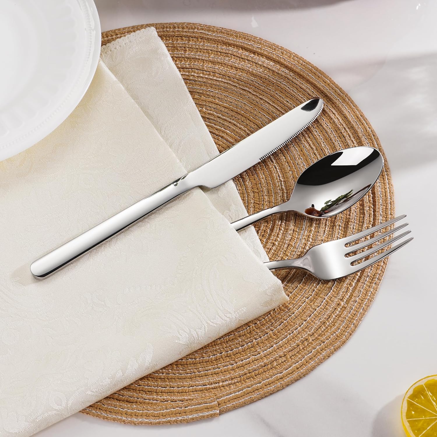 - 40-Piece Silverware Set: The set includes 8 dinner knives, 8 salad forks, 8 dinner forks, 8 dinner spoons, 8 teaspoons, 40 pieces totally.
