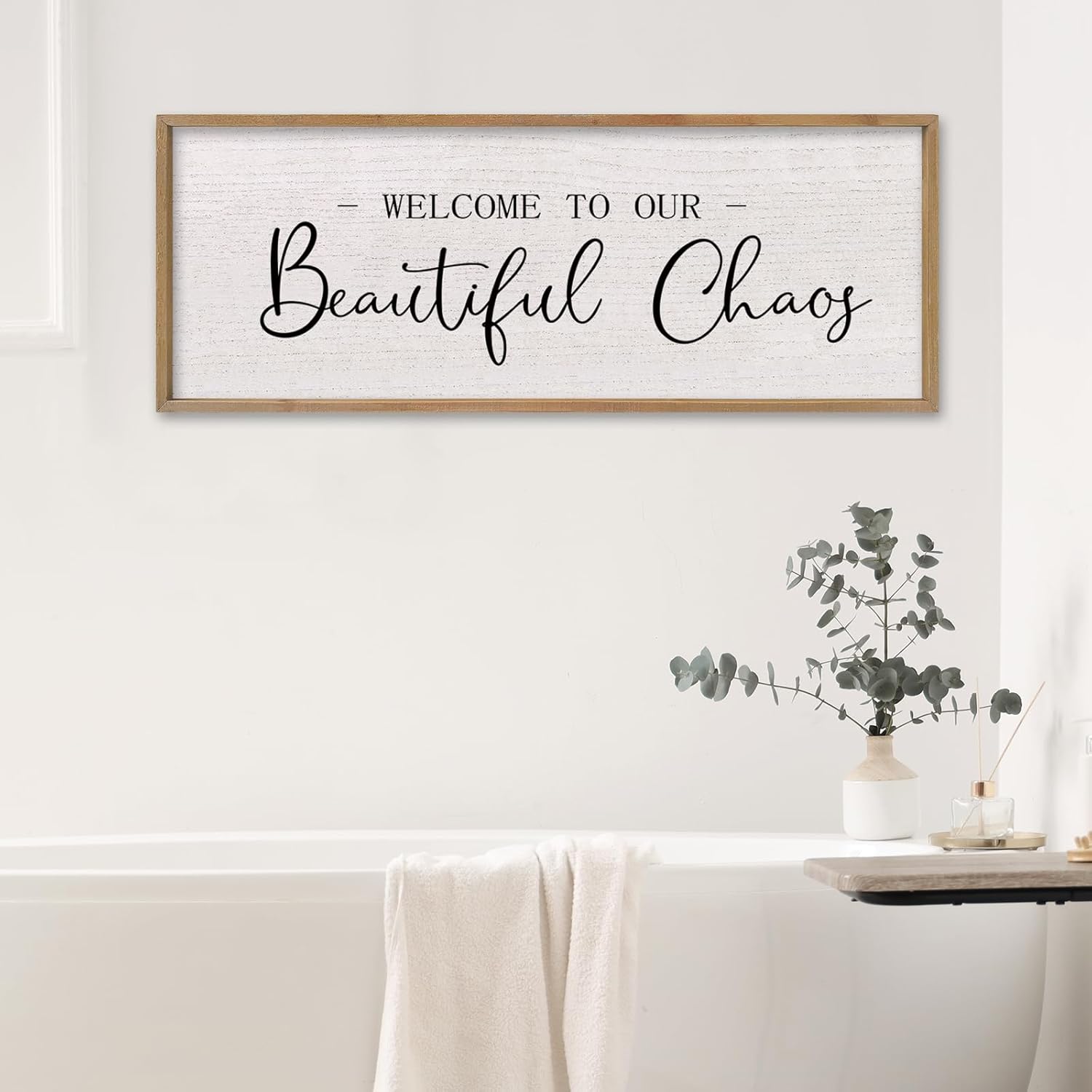 comurdyo Welcome To Our Beautiful Chaos Wall Decor Art 32"X12" for Home Entryway Sign Large Wood Framed Wall Hanging (Wood)