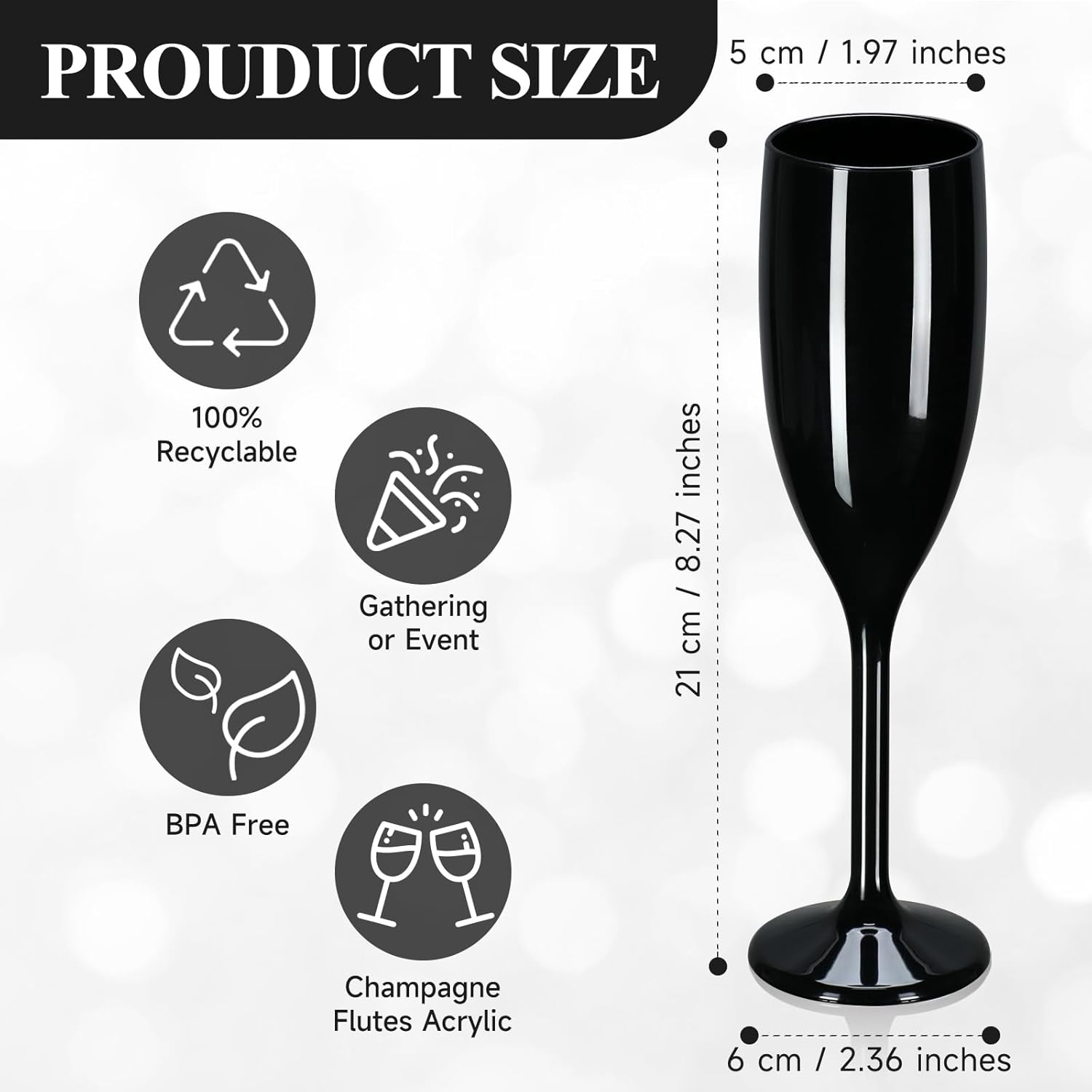 XUWAIDSGN Acrylic Champagne Flutes Toasting Glasses Unbreakable Mimosa Bar Reusable Wine Glasses Vintage Champagne Flutes Stemmed Drinking Cups 5.4 OZ for Christmas Birthday (10, Black)