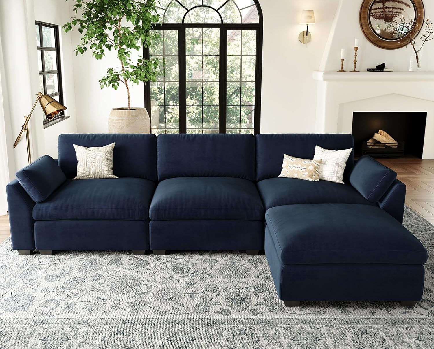 Belffin Extra Large Modular Sectional Sofa,106.3" 4-Seater L Shaped Couch,Velvet Convertible Sectional Couches for Living Room,Comfy Upholstered Modern Cloud Couch,Blue Sofa