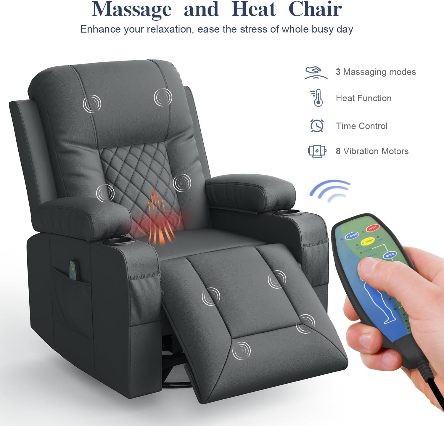 Recliner Chairs for Adults, Massage Rocker with Heated Modern Ergonomic Lounge 360 Degree Swivel Single Sofa Seat Living Room Lounge Recliners Gray