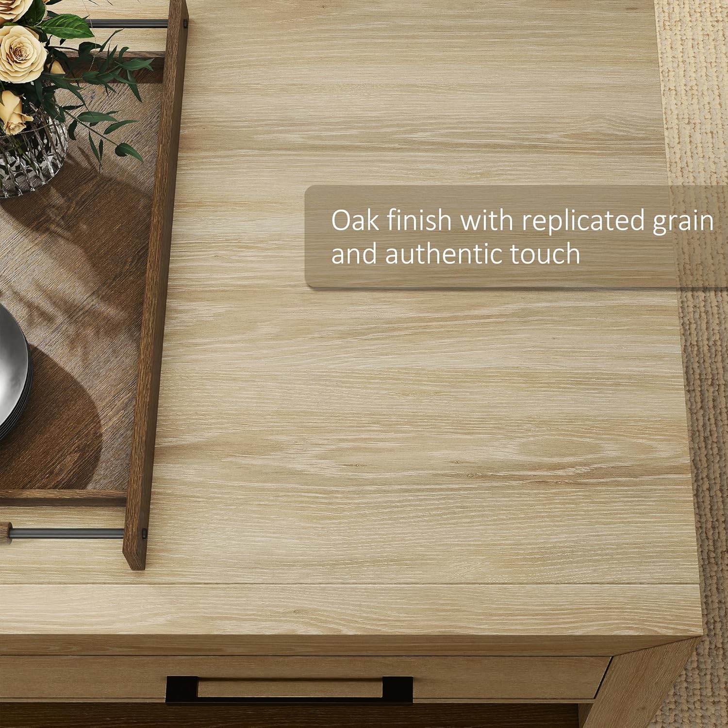- Modern Masterpiece:Hazel collection Coffee Table, The main design uses two thickened front frames, showing the designer's wild modern style. Oak finish with replicated grain and authentic touch. The use of veneers results in high-quality furniture with flawless surfaces and consistent color tones. Size:47.2" W x 18.1" H x 25" D Weight:95 Lbs