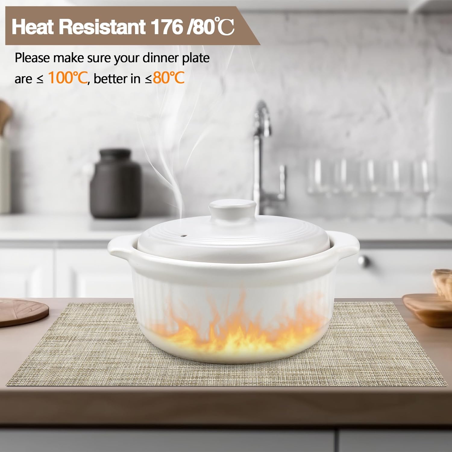 - Heat Resistant: Please make sure your dinner plate are β€ 100β, better in β€80β. It can prevent the table from slipping and scalding the countertop. These beautiful stylish vinyl place mats to add more fun to your dining table