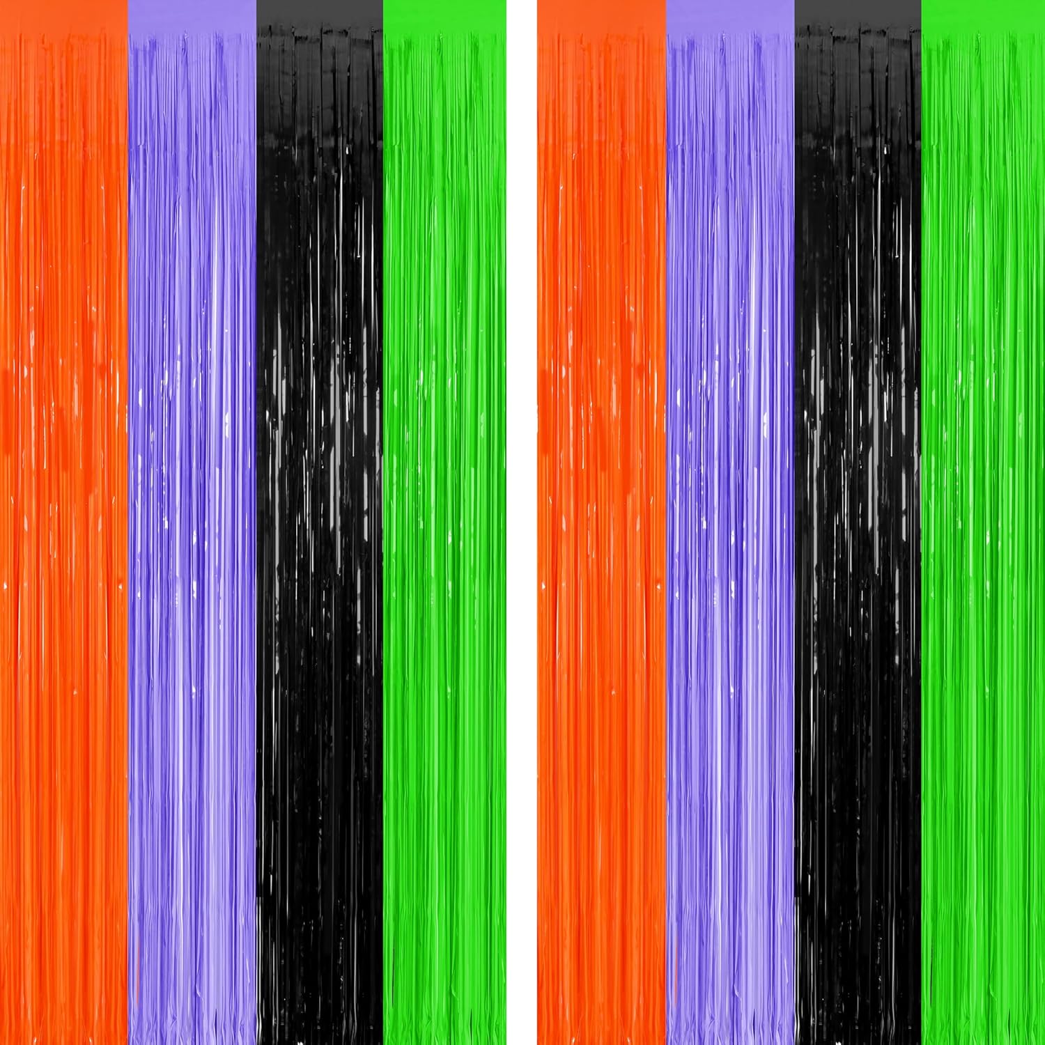 2 Pack Halloween Backdrop, 3.28 FT x 7.05 FT Orange Purple Black Green Party Streamer, Metallic Foil Curtains Tinsel Backdrop, Halloween Party Decorations Photo Props for Door Wall