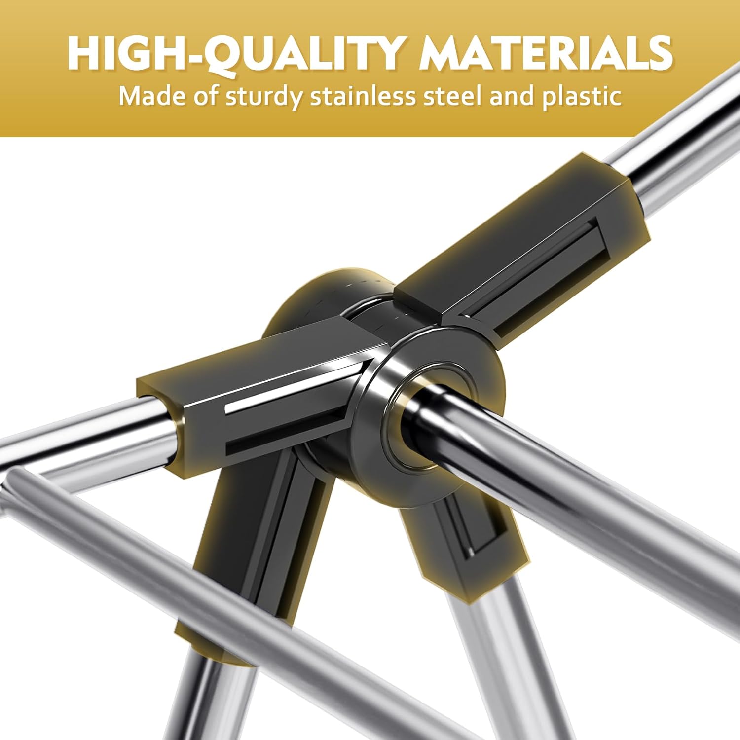 - Large Drying Space: Our drying rack is divided into two tiers, the two drying wings unfold to a width of 56.4 inches, and drying quilts is no problem, the lower tier is designed for hanging smaller items such as socks, towels, etc., with a total of 23 rods, providing spacious drying space for the whole family!