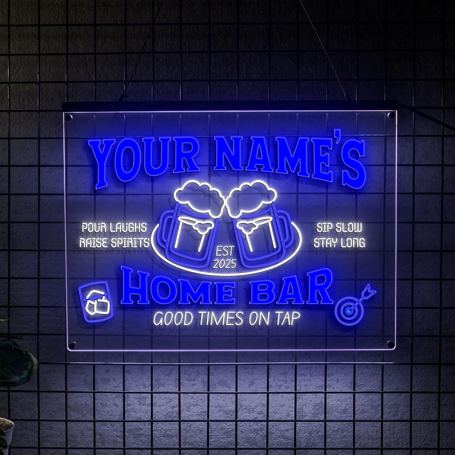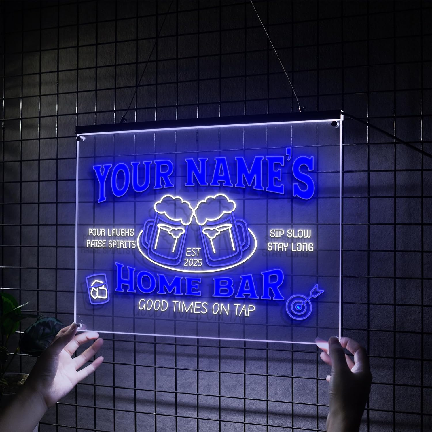- Custom bar signs for home bar wall light up your space with flair. Custom bar signs for home bar wall light up décor with just the right LED glow. Ideal for man caves, home theaters, salons, or cafes. Handmade to impress—no design fees, perfect gift for any space. Disclaimer-The image is for color reference only. All product details are shown in the main image, and you will receive the design for final approval before we ship it to you