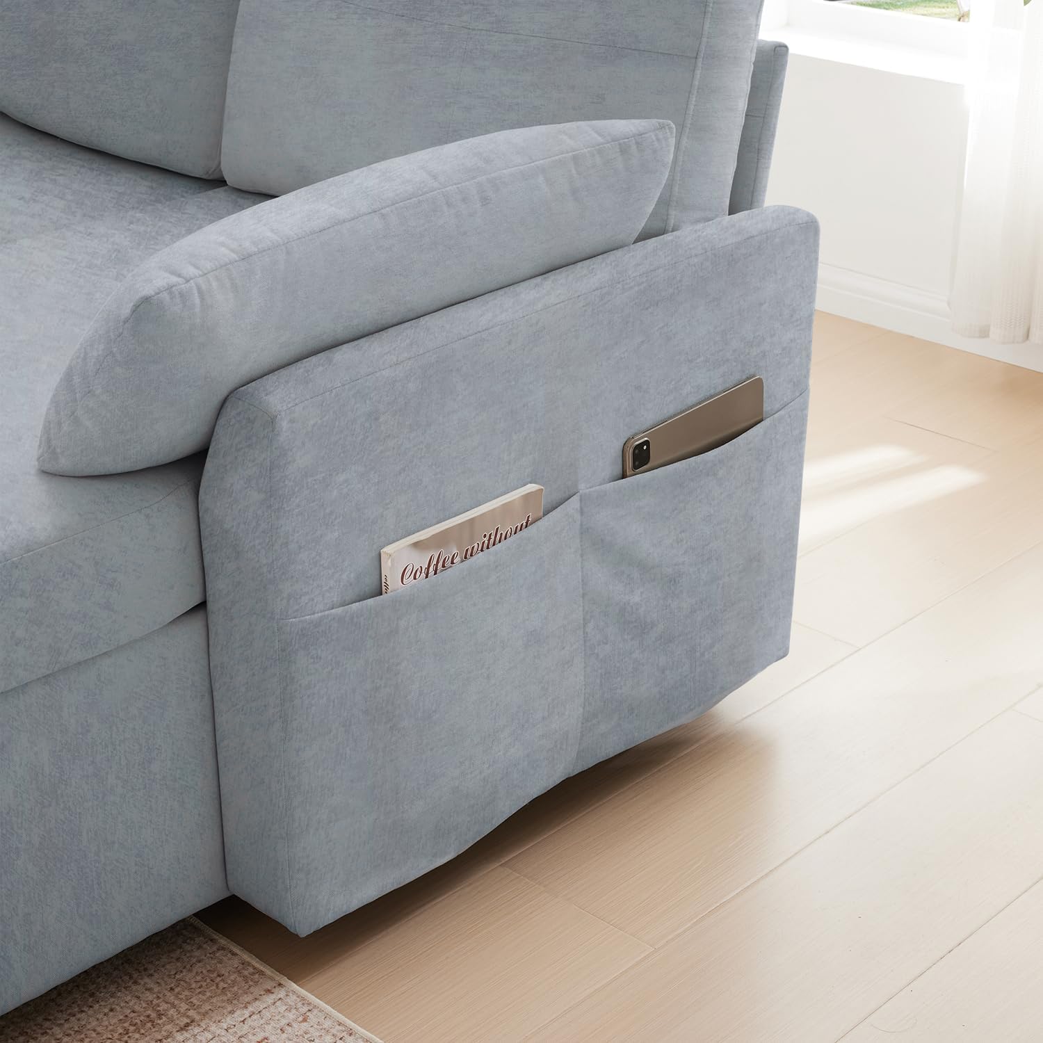 - 【Reversible Chaise & Side Storage】 Modular chaise can be positioned left or right to fit any room layout; includes 2 side pockets for remote controls, magazines, or devices.