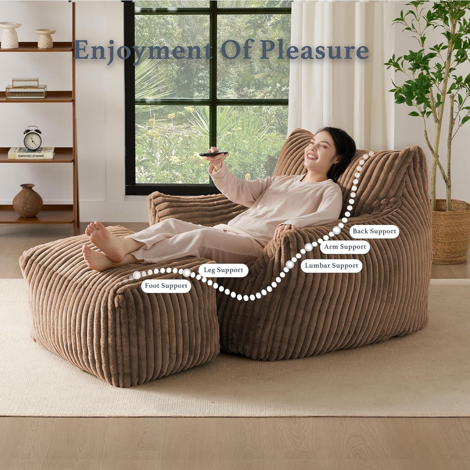 - Ultimate Comfort: Filled with high-resilience shredded foam, this oversized bean bag chair with footstool chaise offers a unique blend of softness, support, and a snug, cocoon-like feel. Perfect for lounging, reading, or using as a comfy gaming chair, itโs designed to elevate your relaxation experience.