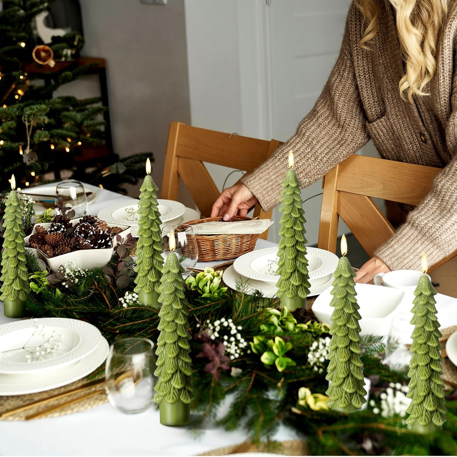 6 Pcs Christmas Tree Shaped Candles Xmas Wax Scented Candles Light Green Decorative Christmas Tree Gifts for Xmas Eve Winter Holiday Party New Year Bedroom Room Table Decor, Stylish Style