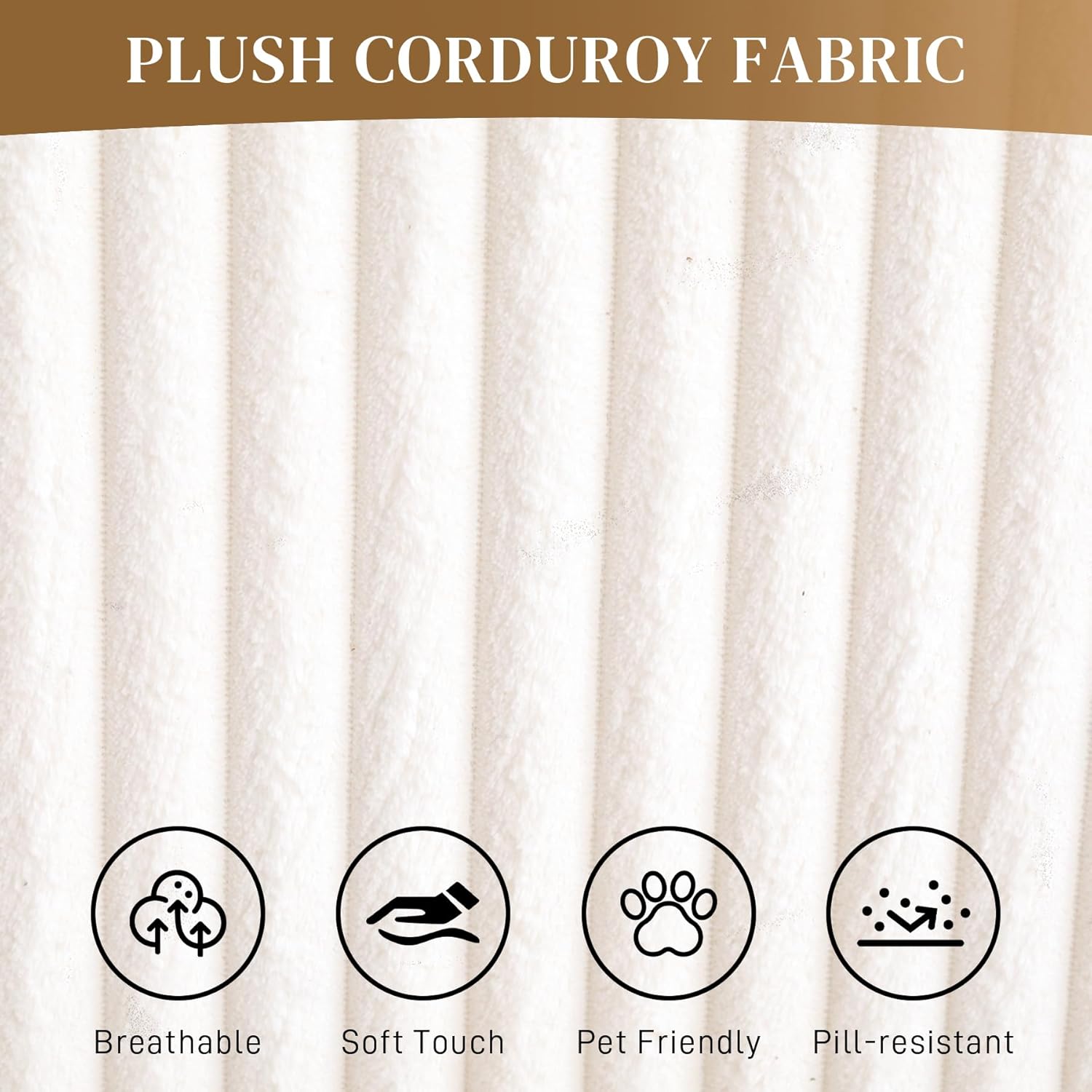 - ăPlush Corduroy Couch SectioanalăOur compressed sofa set is wrapped in premium corduroy, giving you unrivaled softness and warmth. The upgraded material offers better breathability and stain resistance, making the fluffy couch easy to care for and clean. The unique texture and soft sheen make it stand out, providing gentle pampering no matter the season