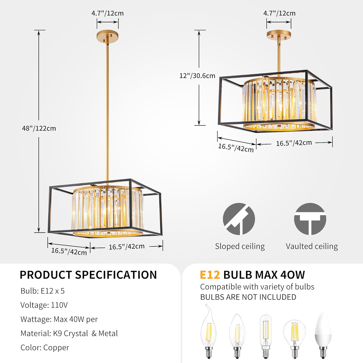 • Adjustable Dimension: With a diameter of 16.5 inches (42cm) and an adjustable height ranging from 12 inches (30.6cm) to 48 inches (122cm), it adapts to various ceiling heights as a pendant light. It fits for installation on both sloped and vaulted ceilings, offering flexible adaptability to diverse room layouts.