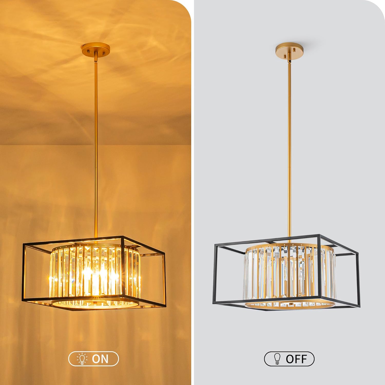 • Gorgeous Appearance: This crystal chandelier boasts shimmering K9 Crystal strips arranged in a cylindrical shape, encased by a geometric black metal frame and warm copper - hued accents. Crafted from Durable Metal Material, the design blends modern minimalism with luxurious radiance. When lit, the K9 crystals refract light into a dazzling, warm glow that elevates the space; when unlit, the contrast of sleek metal and transparent crystal creates a refined, avant - garde look. It complements dining rooms, living areas, and even foyers, infusing spaces with a touch of contemporary luxury.