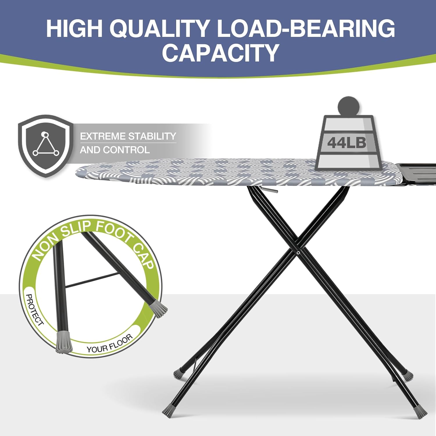 - Adjustable Height Settings -Customize your ironing comfort! The easy-to-adjust height mechanism allows you to set the board from 27 inches up to 32 inches, making it ideal for users of different heights and helping to prevent back strain.
