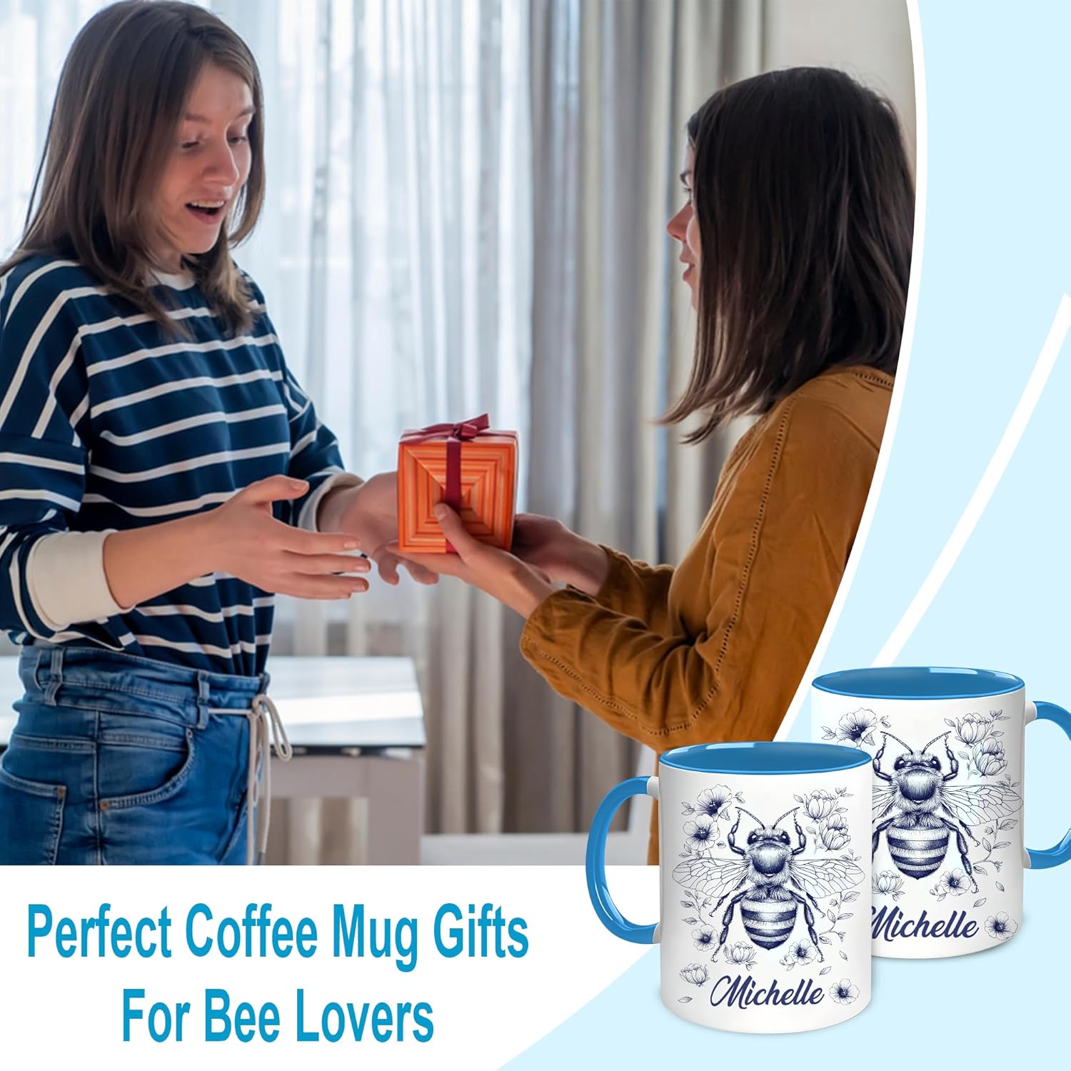 Hyturtle Personalized Floral Bee Mug - Bee Keeper Gifts For Women Lovers Teacher - Honey Gifts For Beekeeper Farmer On Birthday - Queen Honeycomb Decor - Custom Coffee Cup Ceramic Mug 11 Oz 15 Oz