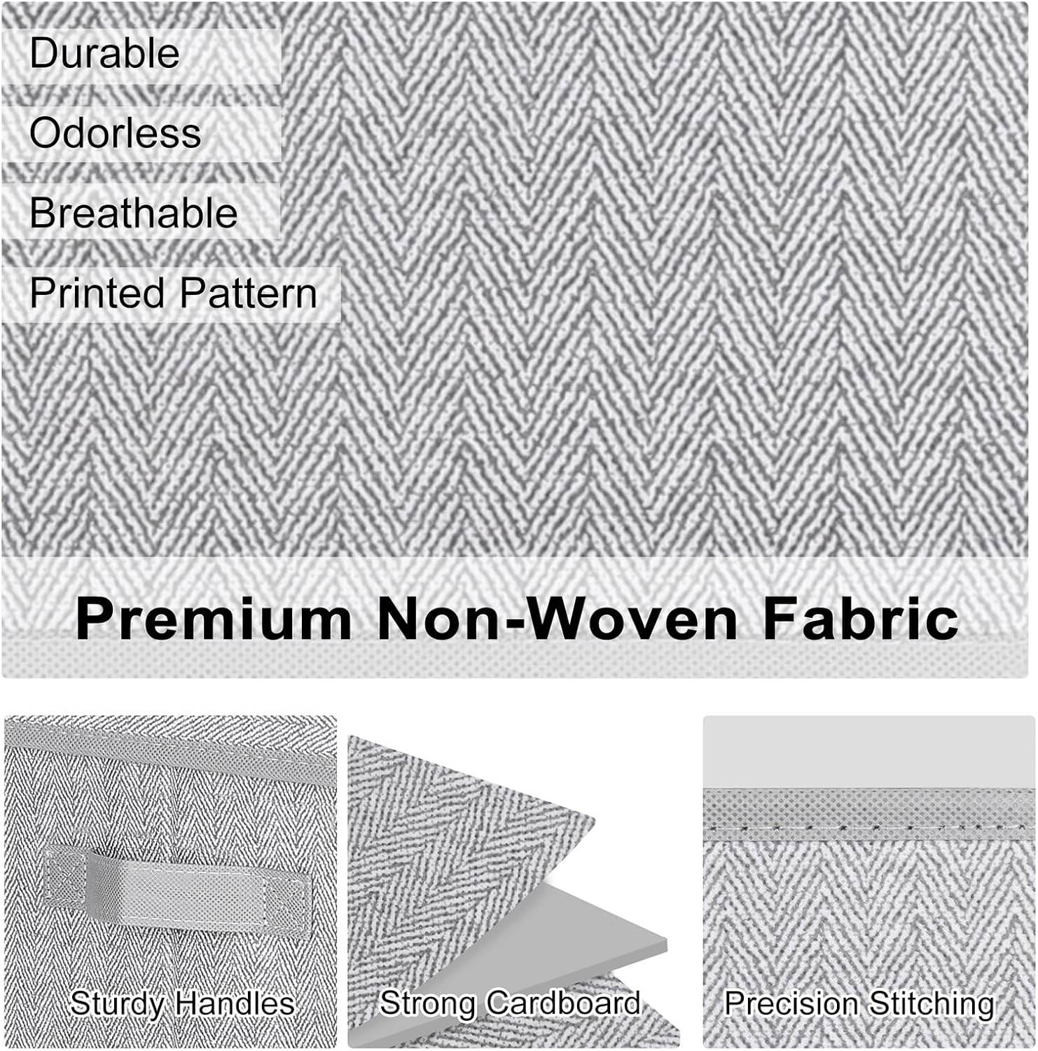 - Premium Material: These storage baskets are made from odorless non-woven fabric and reinforced with sturdy cardboard for durability.