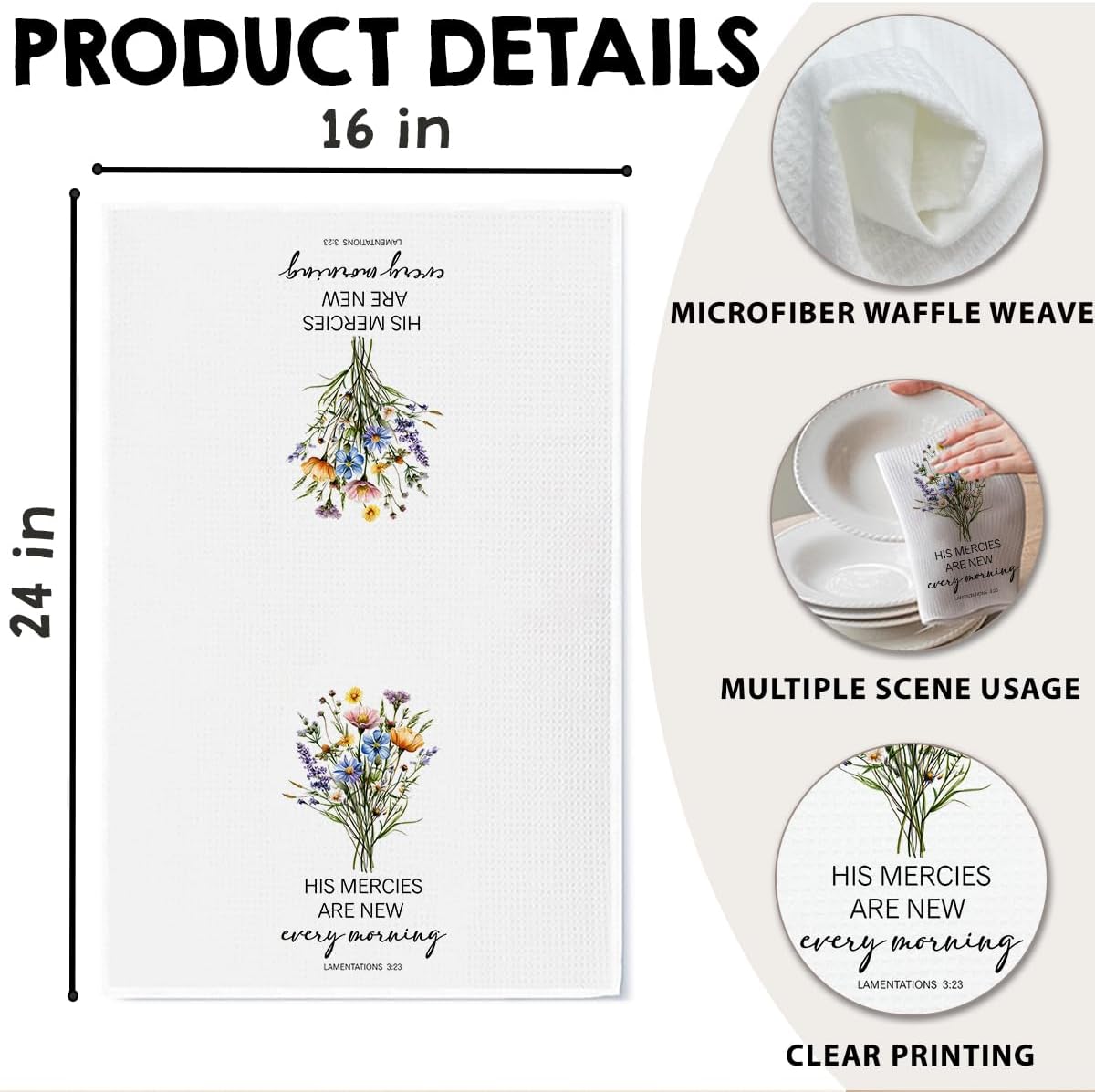 Christian Kitchen Towel, Waffle Weave Microfiber Scripture Hand Towel, His Mercies are New Every Morning Bible Verse Farmhouse Decor for Kitchen Bathroom, Inspirational Gift for Women