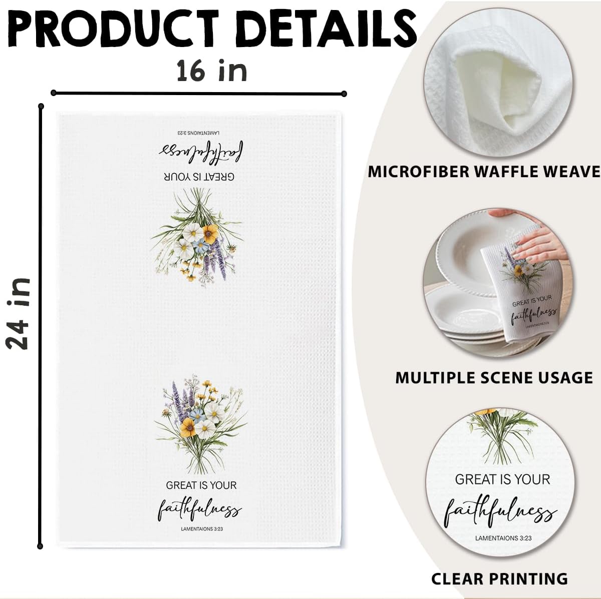 Christian Kitchen Towel, Waffle Weave Microfiber Scripture Hand Towel, Great is Your Faithfulness Bible Verse Farmhouse Decor for Kitchen Bathroom, Inspirational Gift for Women