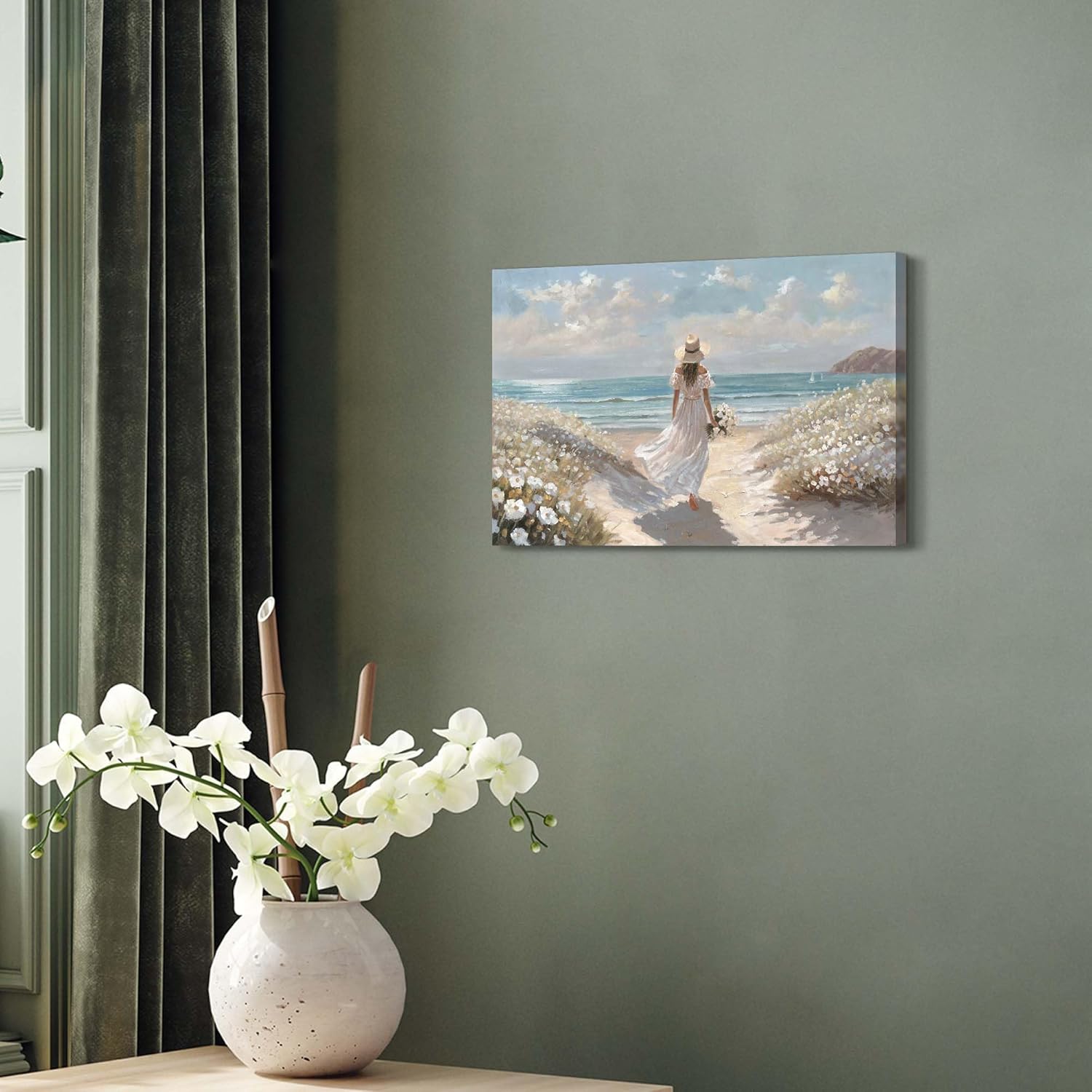 - Premium Beach House Artwork Crafted with gallery-wrapped canvas and a solid wood frame, this ocean wall art withstands daily wear. The textured brushstrokes mimic real seascape paintings, making it ideal for coastal home decor.