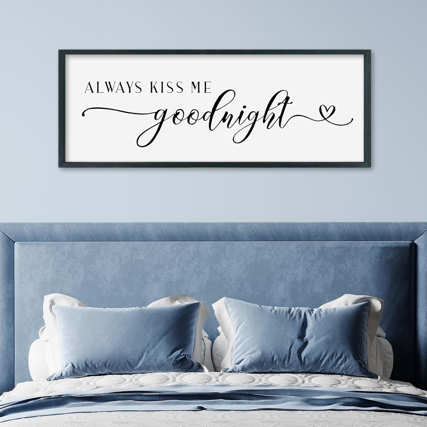 SRSZHIYUE Always Kiss Me Goodnight Sign Wall Decor Art for Master Bedroom Above Bed 32"×12" Large Wood Framed Wall Hanging (Black)