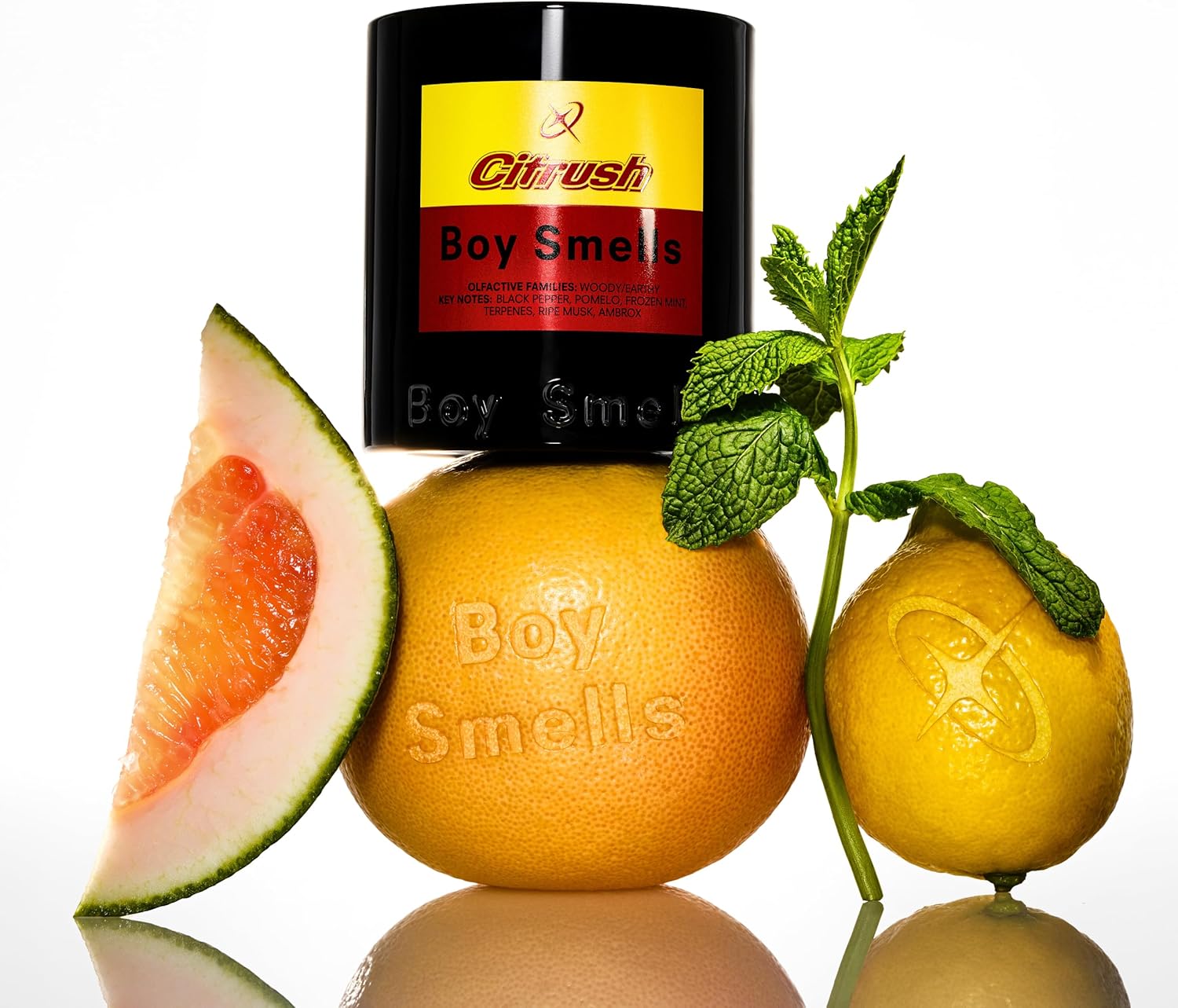 Boy Smells Citrush Candle – Bright Citrus Aroma – Warm Musk Finish – Pomelo Oil – Clean Burning Scented Candle – Long-Lasting Fragrance Throw – Vegan Soy Wax Blend – 9oz Glass Jar