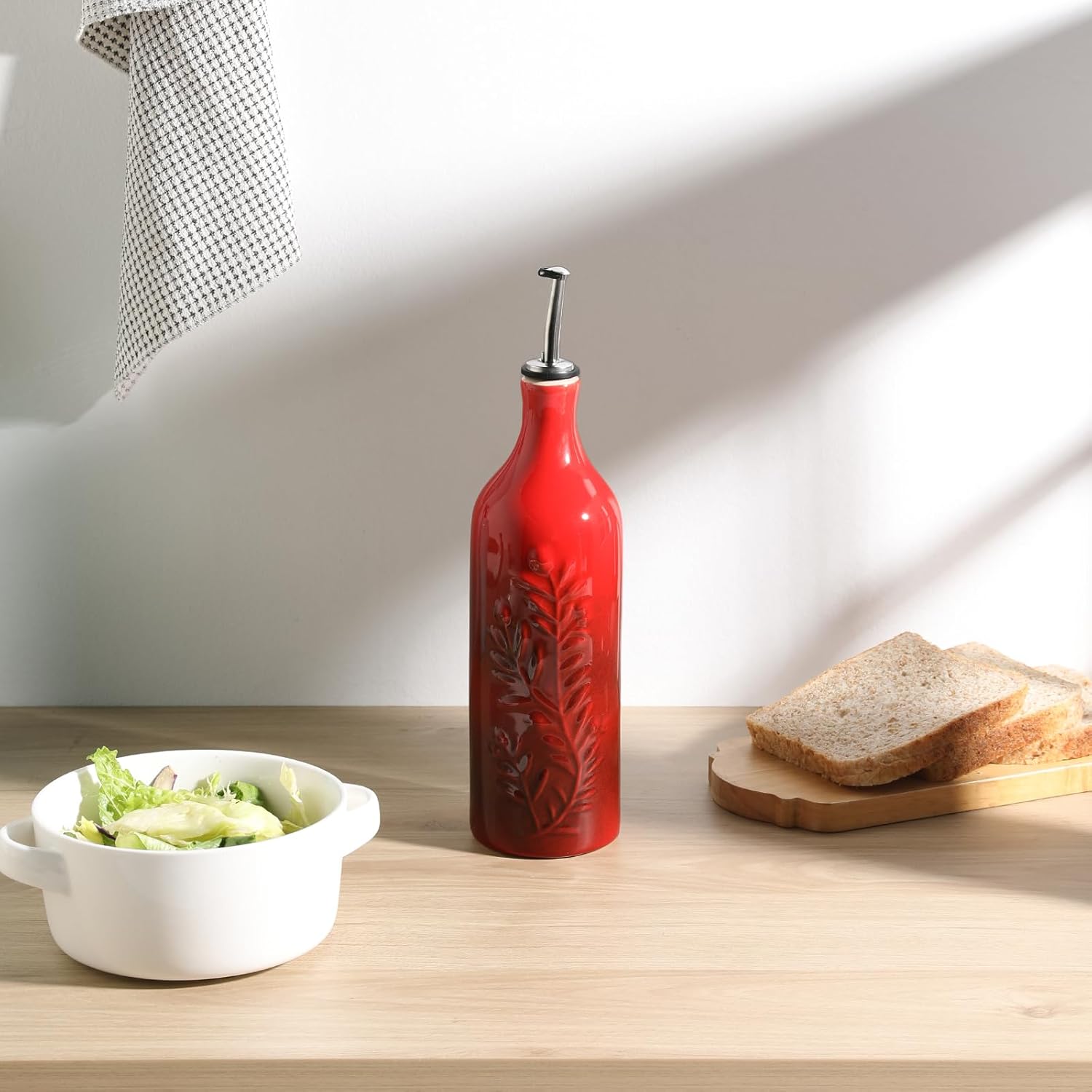 - Durable and Precise Pouring Control - The olive oil bottle fired at high temperatures, to form a smooth glazed surface, strength and durability. The carefully designed spout that allows for easy pouring without any messy drips or spills.
