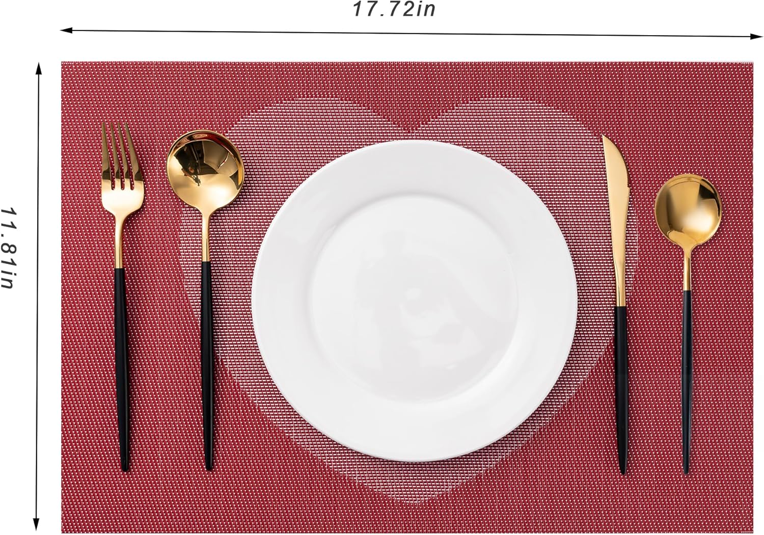 CADONO Placemats Set of 6 Washable Indoor/Outdoor Vinyl Place Mats for Dining Table Durable Non-Slip Heat Resistant PVC Weave Table Mats(Red Pink Heart)