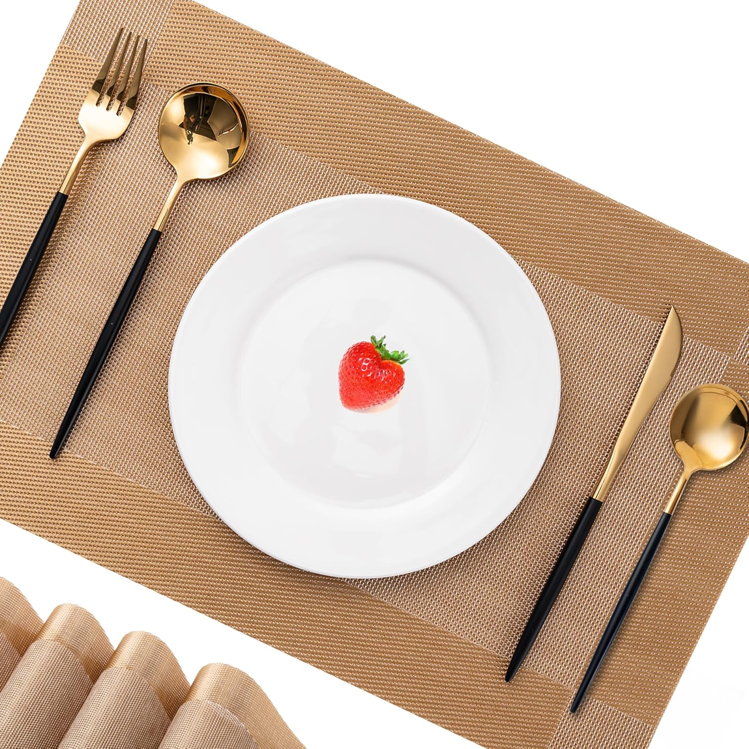 - Protect Your Table:Our placemats protect your table from scratches and spills while adding style. Heat-resistant up to 176°F (80°C), they also keep your food warm. With high-quality woven vinyl construction, they resist stains and water for daily use. Elevate your dining experience with these elegant and durable mats.